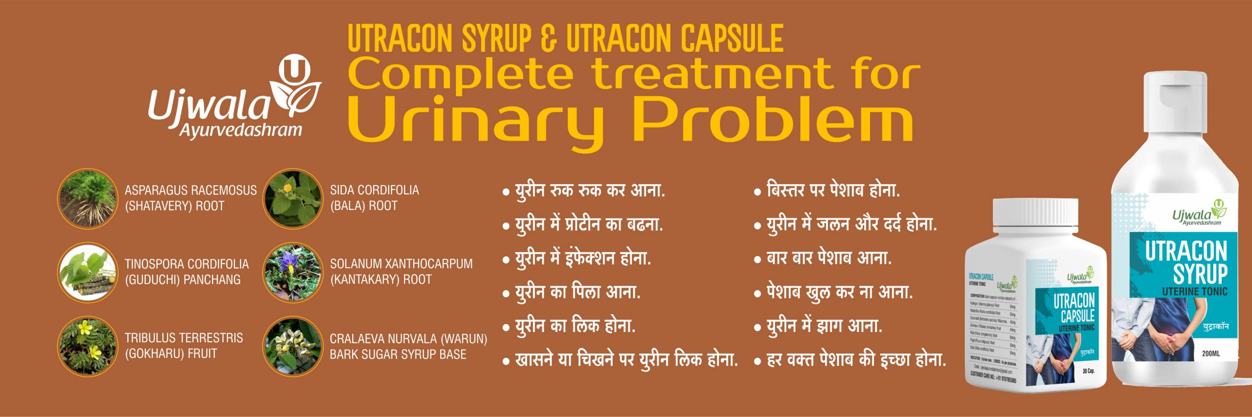 Utracon syrup and Capsule are Research & manufactured by M/s Ujwala ayurvedashram The award winning manufacturer. Ujwala ayurvedashram has got 1st prize as BEST ENTERPRENUR OF MAHARASHTRA FOR 2018. Utracon syrup helps to maintain efficient kidney and urinary