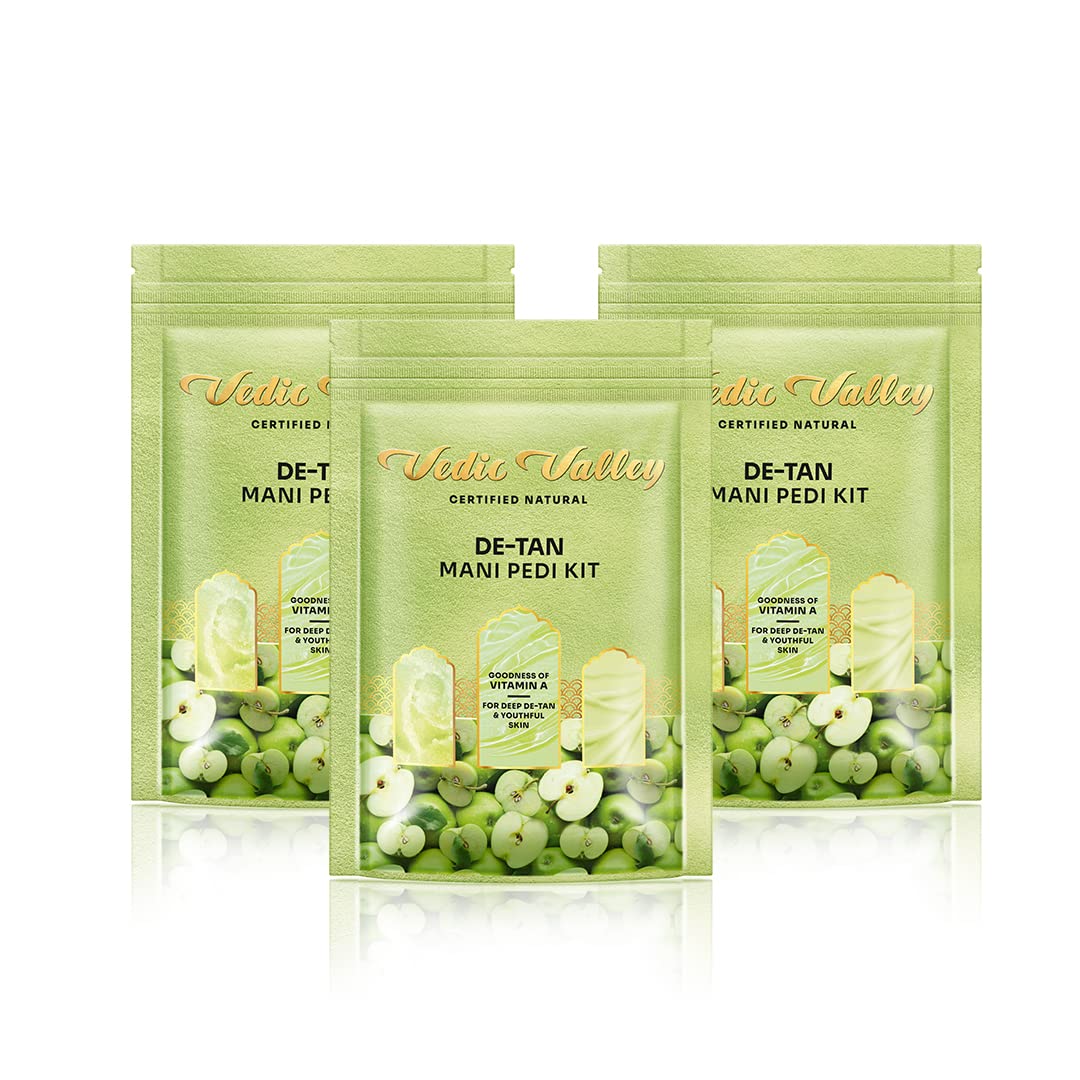 Vedic Valley Certified Natural Detan Manicure & Pedicure Kit | Repairs Cracked & Dry Heels | With Organic Actives for deep Moisturization| 75 gm Each (Apple & Honey (Pack of 3))