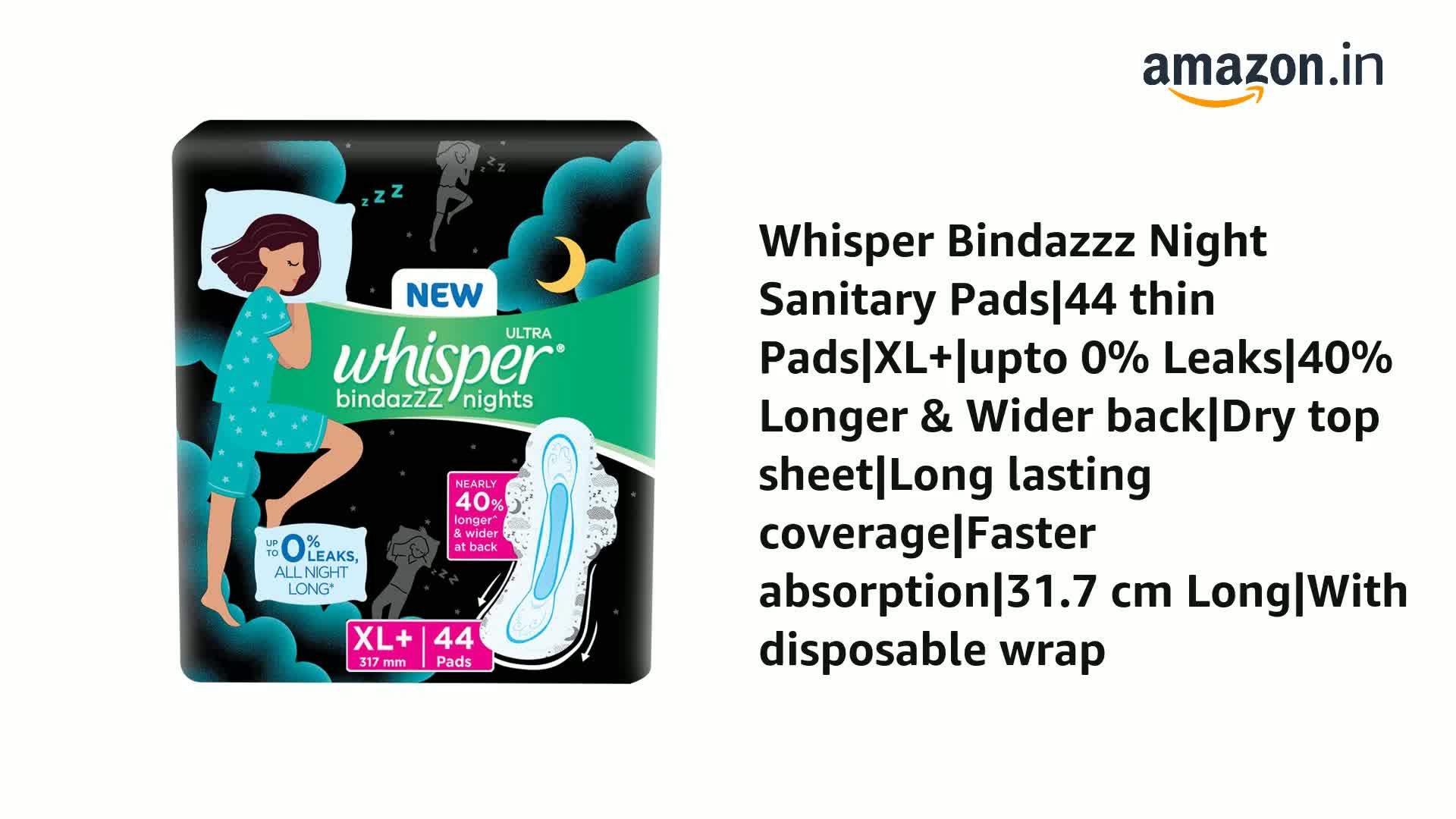 HomeHealth & PersonalPersonal CareWomen WellnessWhisper Bindazzz Nights 44 XXL Sanitary Pads, Upto 0% Leaks All Night Long, For Heavy Flow, Nearly 40% Longer with Wider Back, Active odor lock so you feel fresh, Disposable Wrapper