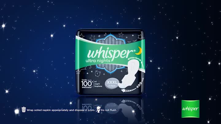 Whisper Bindazzz Nights ensures upto 0% leaks all night long. In order to manage night-time flow these pads are nearly 40% longer and have a wider back so you are covered from leaks from all sides.