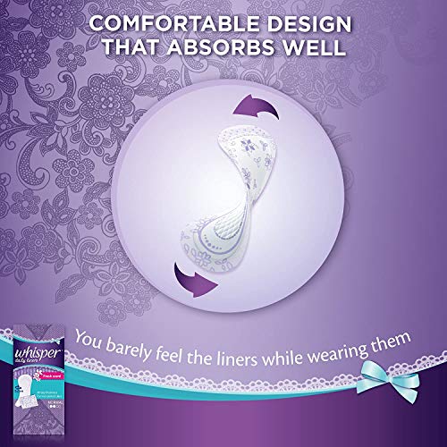 Whisper daily liners provide All Day Freshness with a comfortable & breathable design. They have Odour Neutralising Technology. They help you stay fresh all day long on your regular days protecting you against vaginal discharge or on the days before your period when you are unsure about when it will start. These panty liners not only provide reliable protection against wetness but also have a floral scent for confidence that lasts all day.