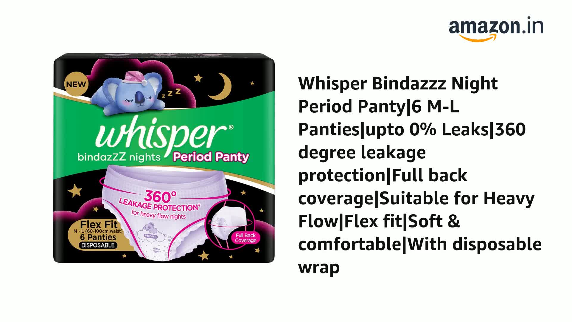 Whisper Super Absorbent Period Panty gives you 360 Degree Leakage Protection for Heavy Flow. It provides full back coverage with a perfect Panty like fit. Whisper Period Panties are soft & comfortable - Must try!