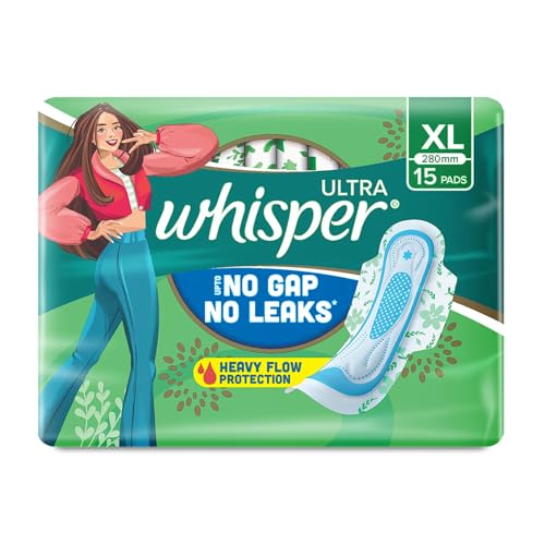 Whisper Ultra Clean Sanitary Pads for Women, XL, Pack of 15 Napkins
