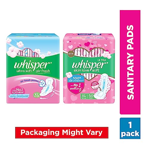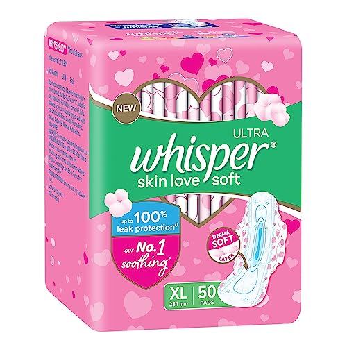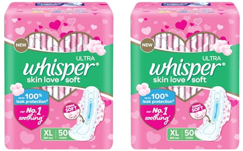 Whisper Ultra Skinlove Soft Sanitary Pads for Women|50 thin Pads|XL|Cottony soft|our #1 Softness|Soft top sheet|Irritation free |28.4 cm Long|With disposable wrap (Pack of 2)