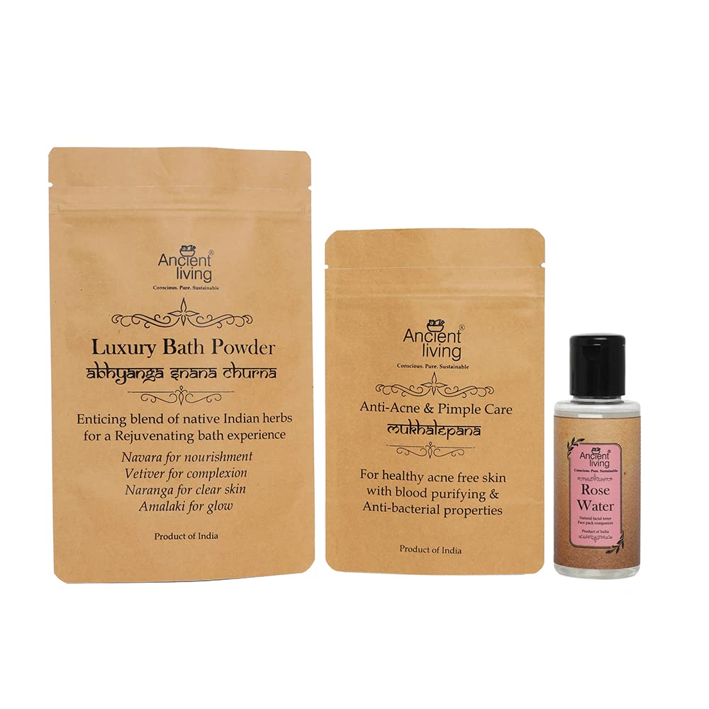 Ancient Living Organic Anti Acne Combo Pack | Luxury Bath Powder | Herbal | Pimple Removal | Glowing | Pigmentation | Rose water | Blemishes |