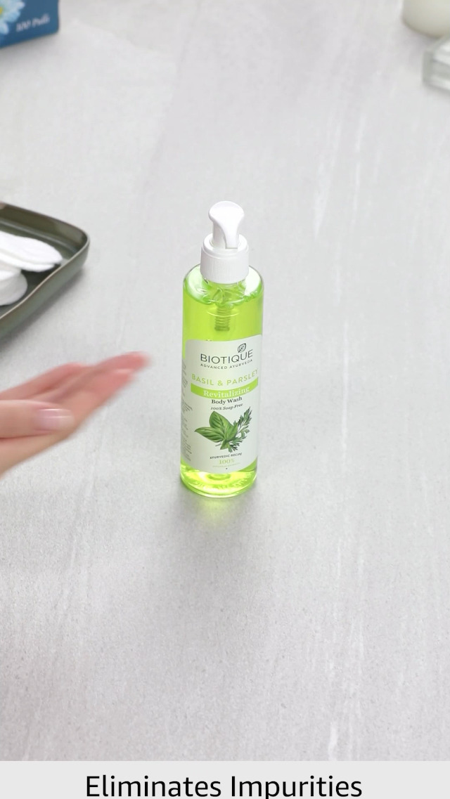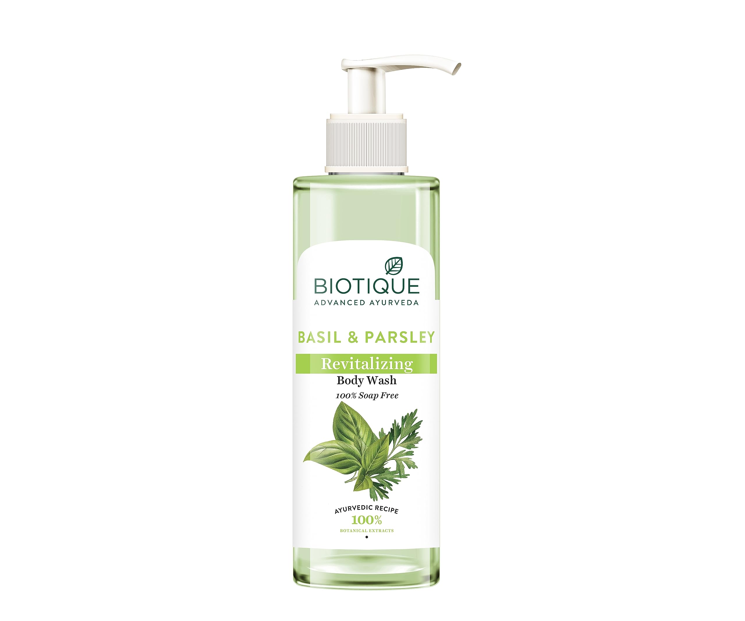 This clear body wash is a blend of pure basil parsley margosa wheat germ and coconut oil to gently wash away body impurities without disturbing the skinâs natural ph balance.