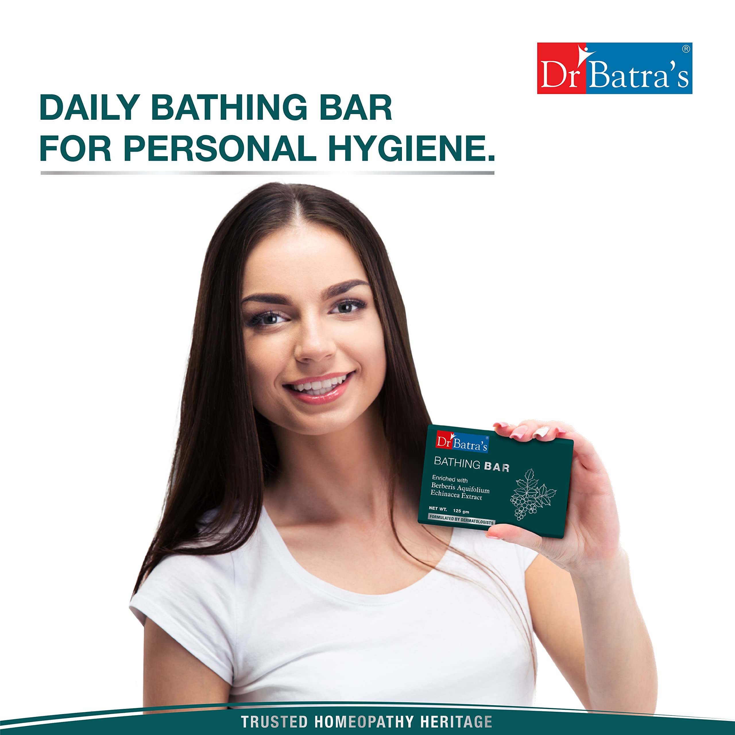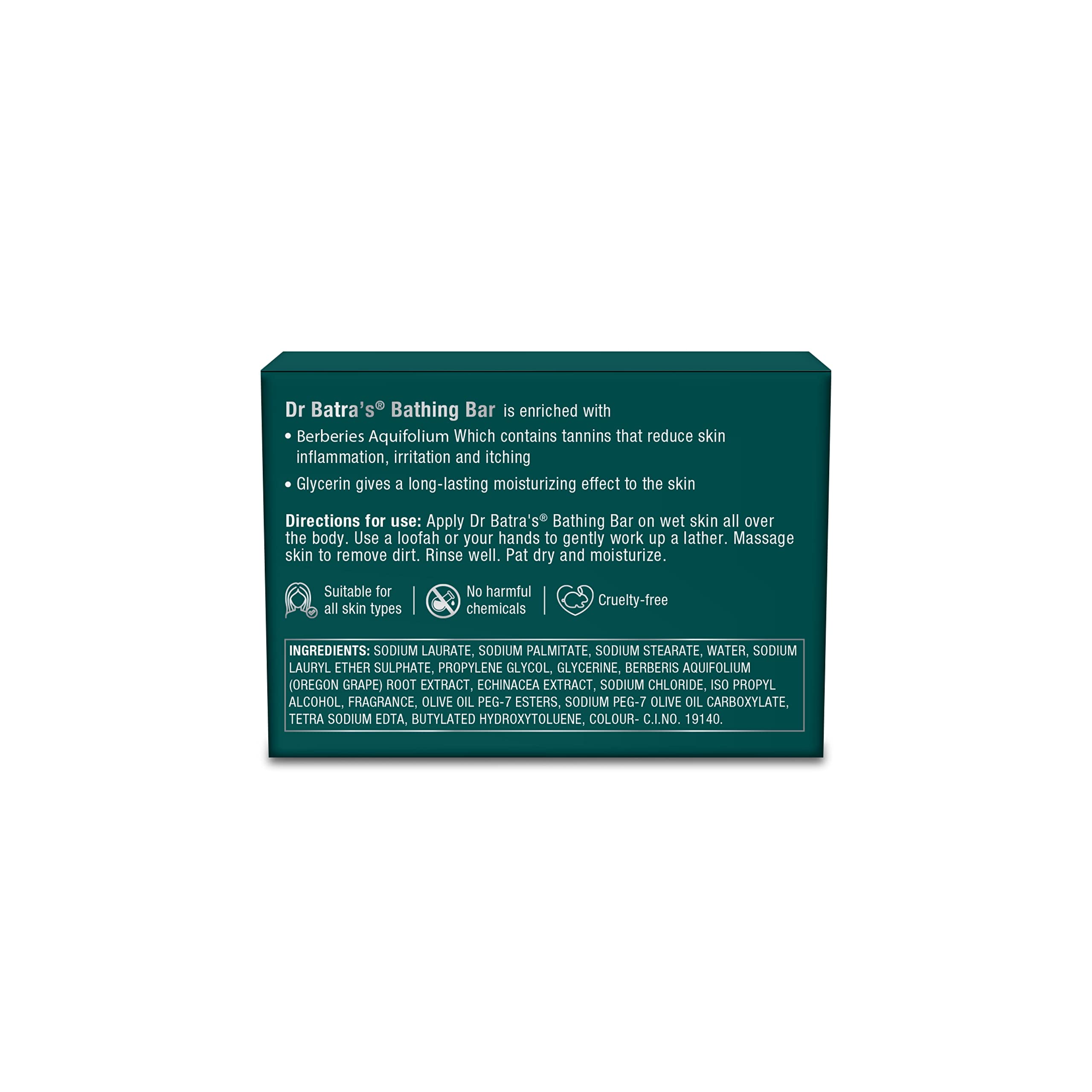 Dr. Batra's Bathing Bar Enriched with Berberis Aquifolium & Echinacea Extracts Soap for soft & supple skin Protects from skin infections SLS & Paraben free Safe & Cruelty free (125g)