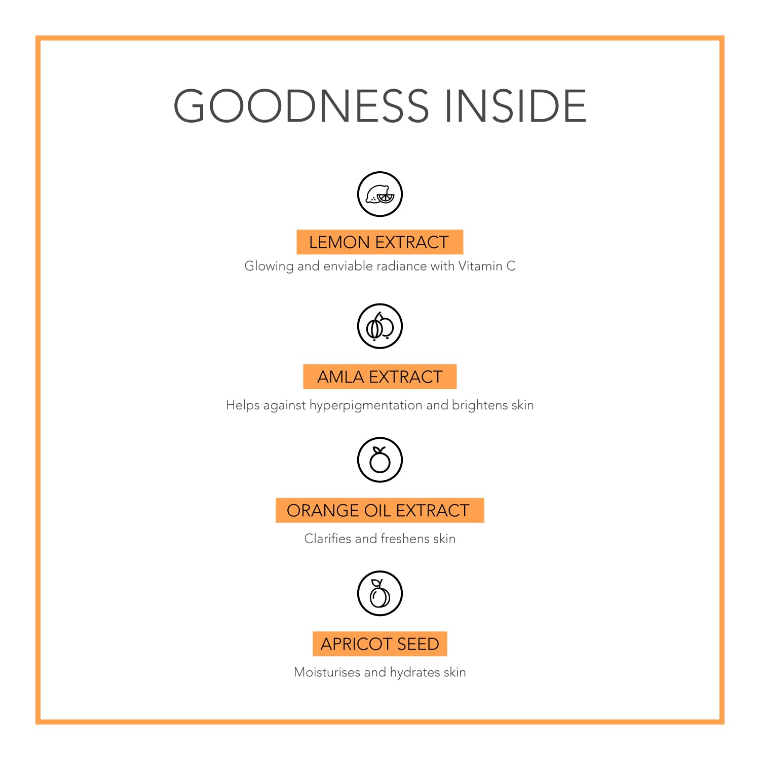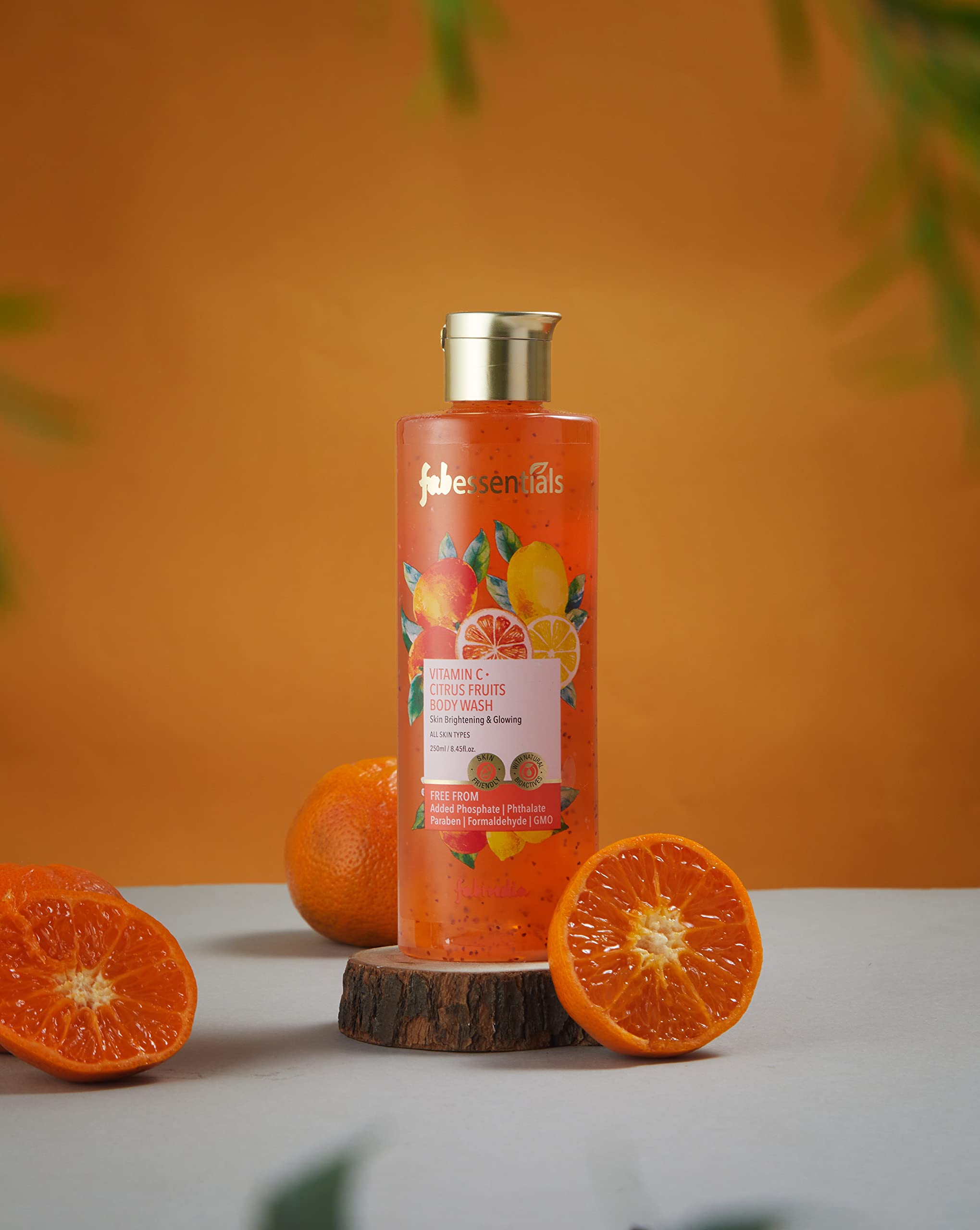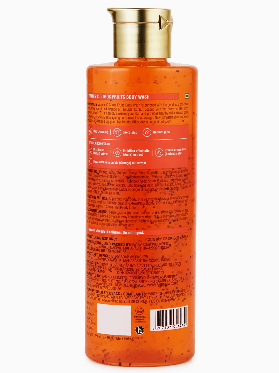 Vitamin C Citrus Fruits Body Wash is enriched with the goodness of Lemon extract Amla extract and Orange oil soluble extract. Loaded with the power of the super ingredient Vitamin C this deeply cleanses your skin and provides healthy radiance and glow while helg slow early skin ageing and prevent sun damage. Now jumpstart your mornings with a citrusy-and say good bye to impurities excess oil and dull skin!