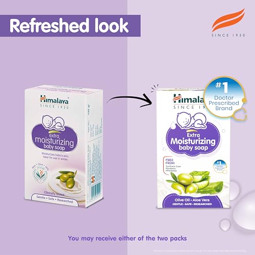 Himalaya Extra Moisturizing baby soap is designed to cleanse baby skin without causing post-bath dryness and for use in winter. Indian Aloe Almond Oil and Olive Oil are well-known moisturizers which help prevent post-bath dryness