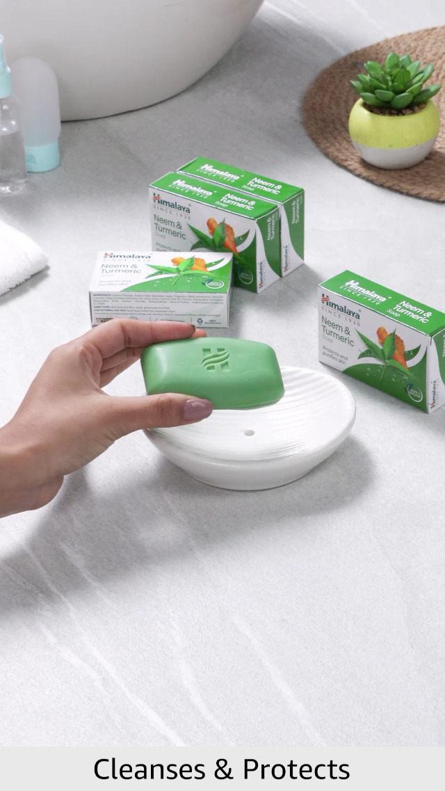 Himalaya's neem and turmeric soap blends together all the goodness of naturally derived ingredients to keep your skin protected at all times. The oils of neem and turmeric which contain antibacterial and antifungal properties protect your skin from harsh environmental conditions. Key ingredients: neem is an excellent skin care ingredient. Neem Oil relieves dry skin and soothes itchiness redness and irritation. It also improves general skin health and immunity combating bacterial infections such as acne boils and ulcers. Turmeric has strong anti inflammatory properties which soothe your skin gently. The herb helps to even out your skin tone and complexion. Turmeric also helps to retain the skin's elasticity and makes it more supple. Directions for use: wet the body apply neem and turmeric soap generously work up a lather and rinse.