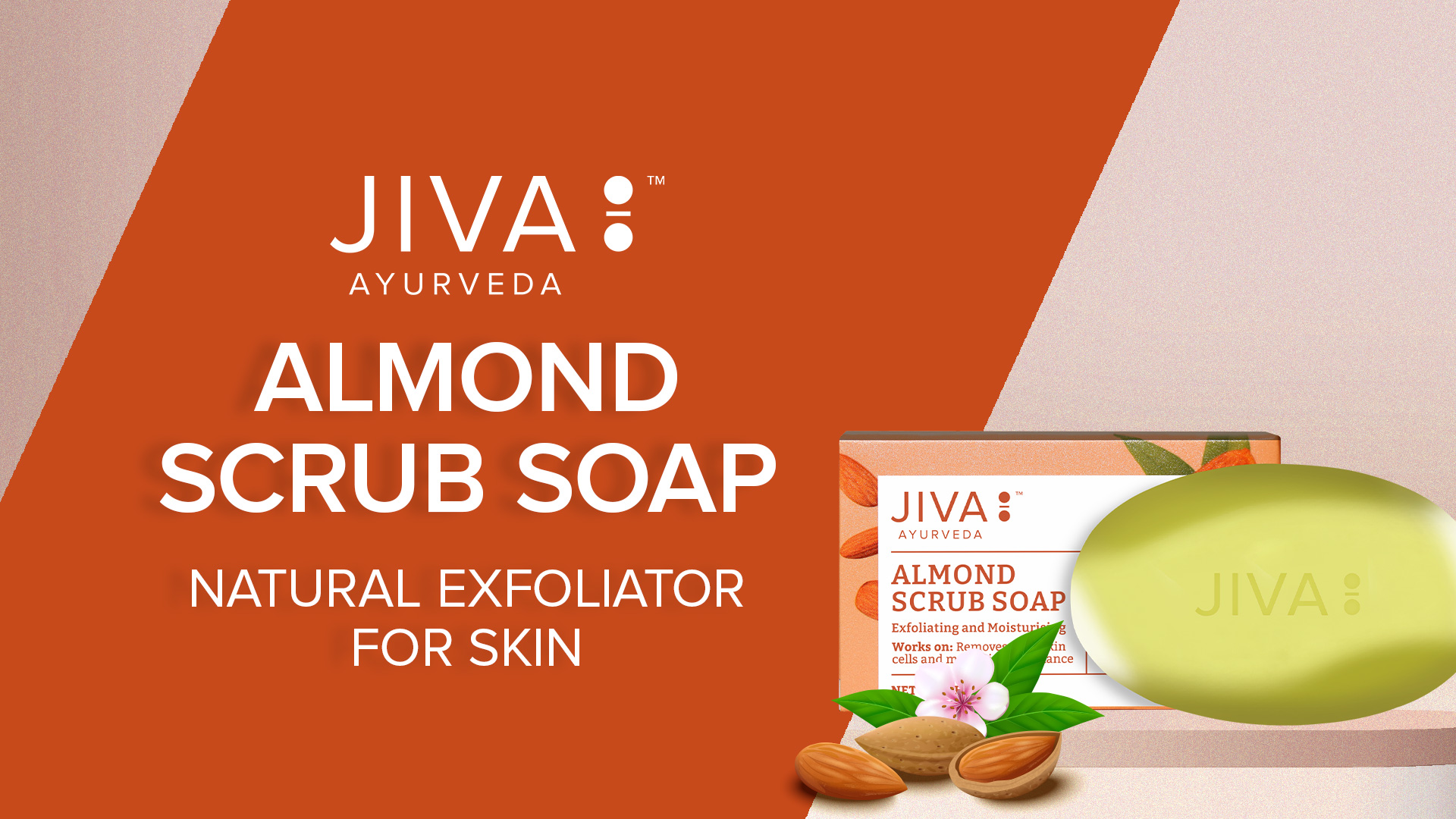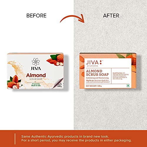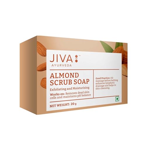 Your skin faces a lot of ordeal against dirt impurities and germs that constantly come in contact with your body. Repeated exposure to pollutants can lead to skin problems such as dry lifeless skin pimples and blackheads. Now you can find an all-time solution to skin problems with Jiva Almond Scrub Soap. It is a fine combination of herbs renowned for their efficacy in skin care such as neem almond and aloe vera. Regular use of this soap cleanses the pores of accumulated impurities keeps the skin infection-free and restores life to dull skin.