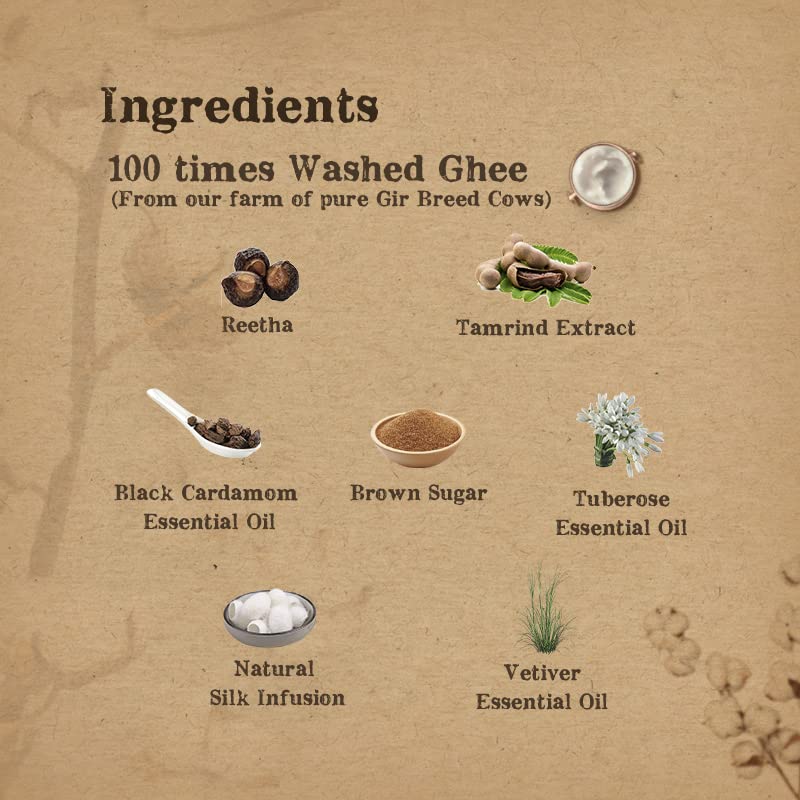 Our Deep Cleansing Silk with Sugar & Tamarind is the perfect choice for combination skin because of its gentle cleansing properties. Our special ayurvedic formulation combines natural ingredients such as Reetha extract tamarind extract and raw cane sugar with some beneficial and fragrant essential oils. With virgin coconut oil your skin gets the ed benefit of hydration and toning. This has been created to help remove all kinds of impurities from the skin. Your skin is exposed to dust particles pollutants heat and a host of other things that damage and dull your skin. With regular use this can help restore your skins beautiful glow help tone it hydrate it and leave you with soft supple skin. The is perfect for use on the face and the rest of your body because it works wonders on combination skin and normal skin. We o use 100 times washed ghee an incredible ingredient sourced straight from our farm of pure Gir breed cows. Give your skin a much needed cleanse while unclogging pores restoring hydration and healing blemishes in the skin.
