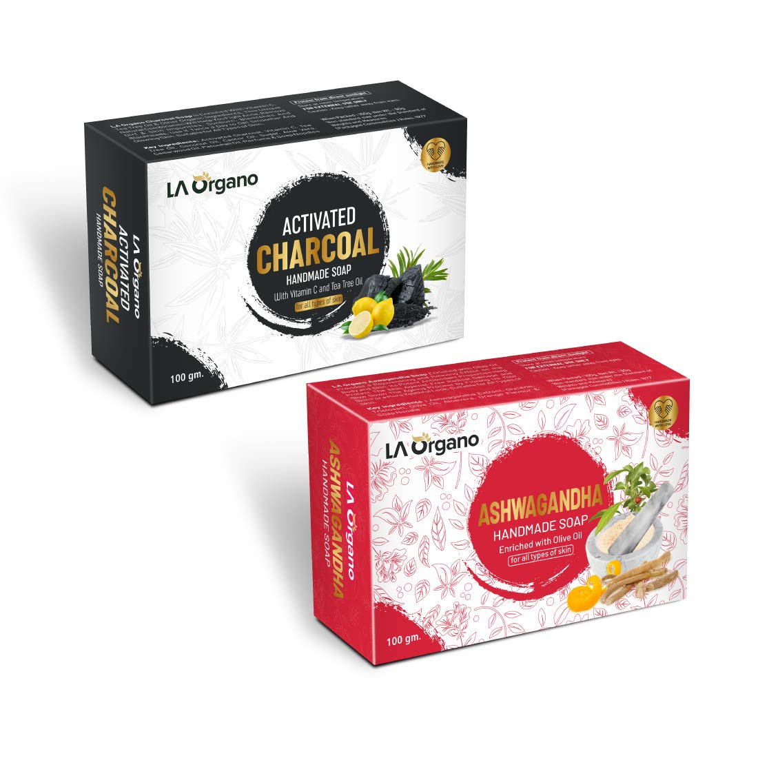 LA Organo Charcoal & Ashwgandha Handmade Bath Soap (100g each Pack Of 2)