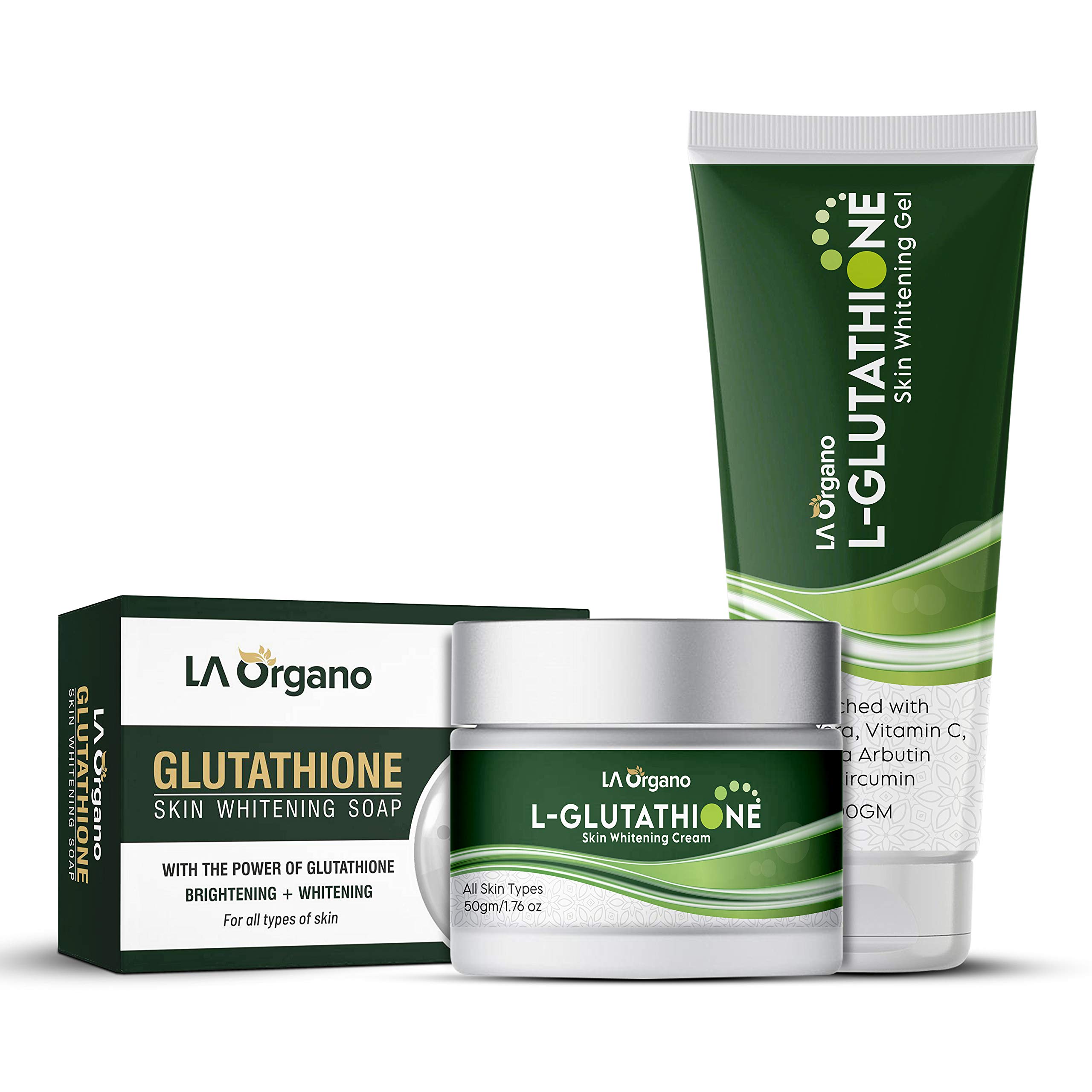 LA Organo Glutathione Cream 50g & Glutathione Gel 100g & Glutathione Soap (Pack of 3)