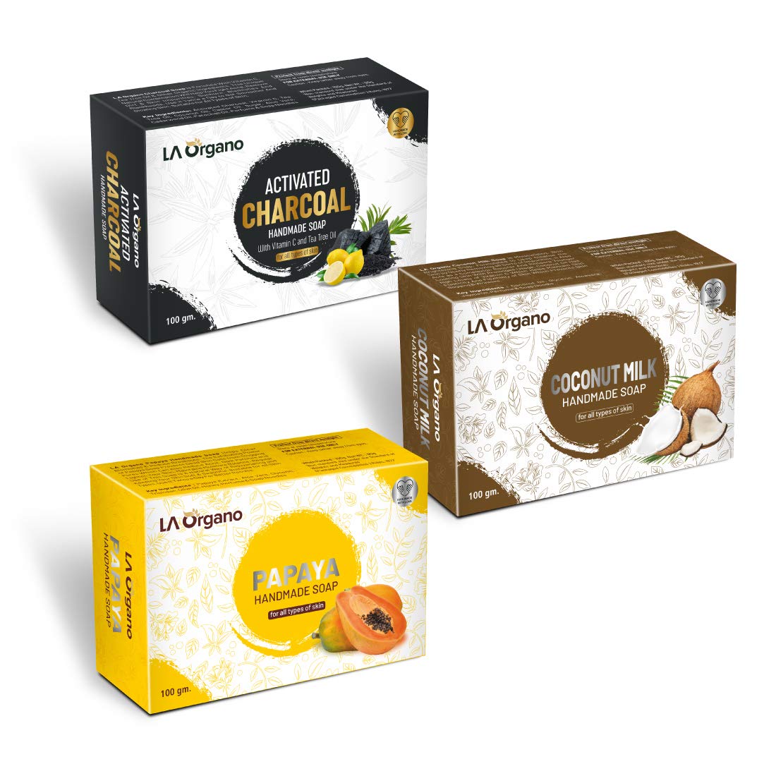 LA Organo Handmade Charcoal Coconut Milk & Papaya Bath Soap (100g each Pack Of 3)