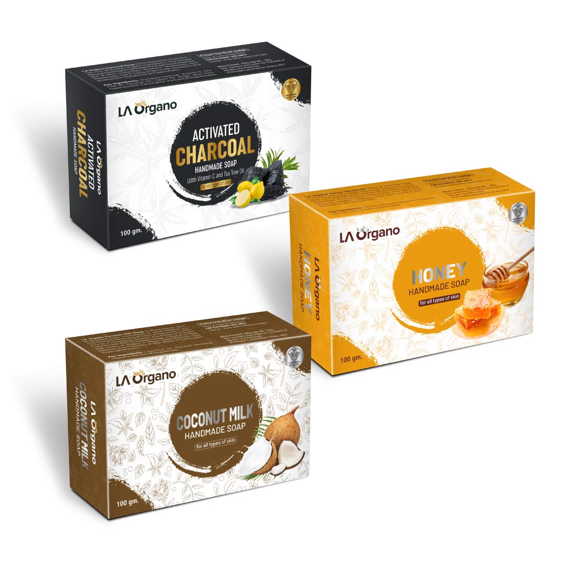 LA Organo Handmade Charcoal Honey & Coconut Milk Bath Soap (100g each Pack Of 3)