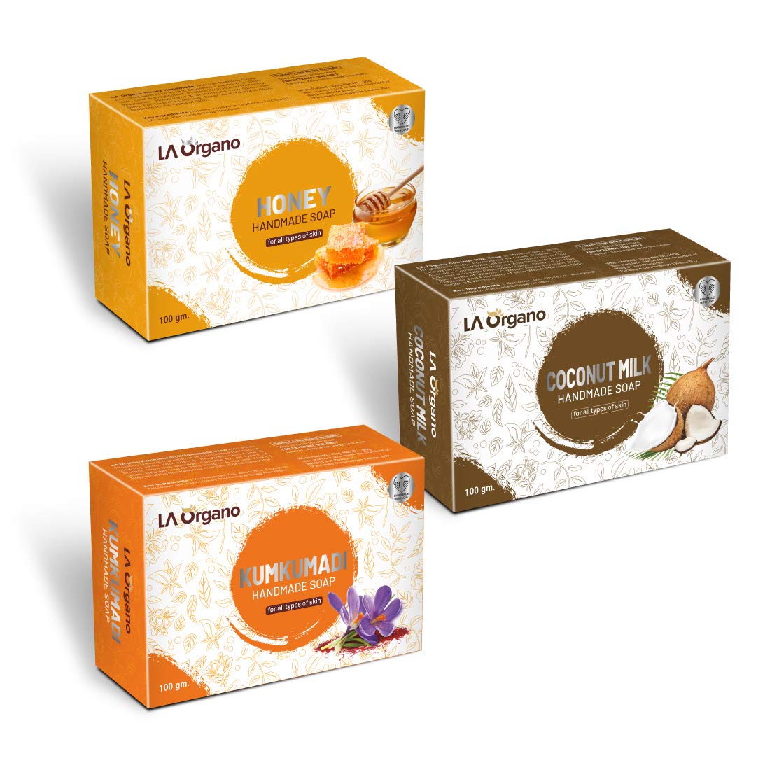 LA Organo Handmade Honey Coconut Milk & Kumkumadi Bath Soap (100g each Pack Of 3)