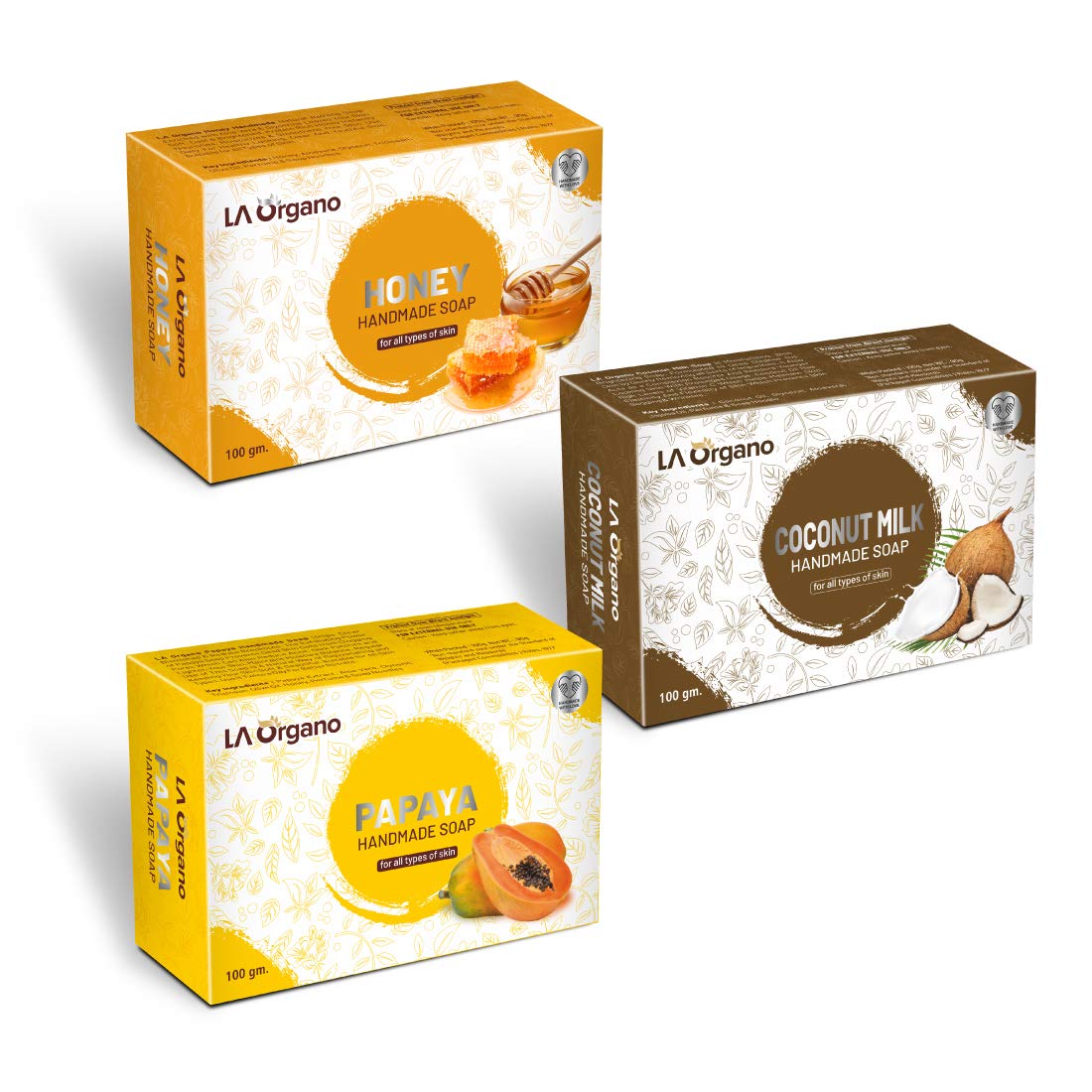 LA Organo Handmade Honey Coconut Milk & Papaya Bath Soap (100g each Pack Of 3)