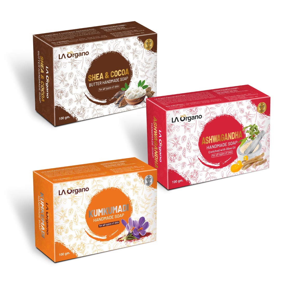 LA Organo Handmade Shea Cocoa Ashwagandha & Kumkumadi Bath Soap (100g each Pack Of 3)