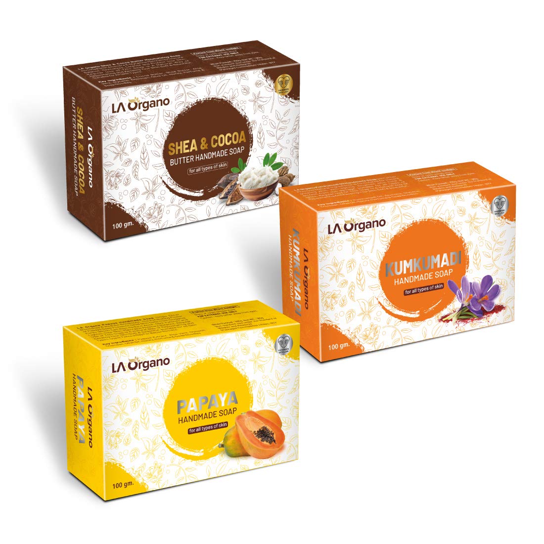 LA Organo Handmade Shea CocoaKumkumadi & Papaya Bath Soap (100g each Pack Of 3)