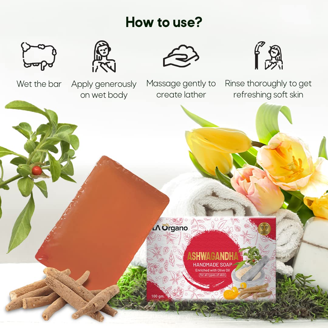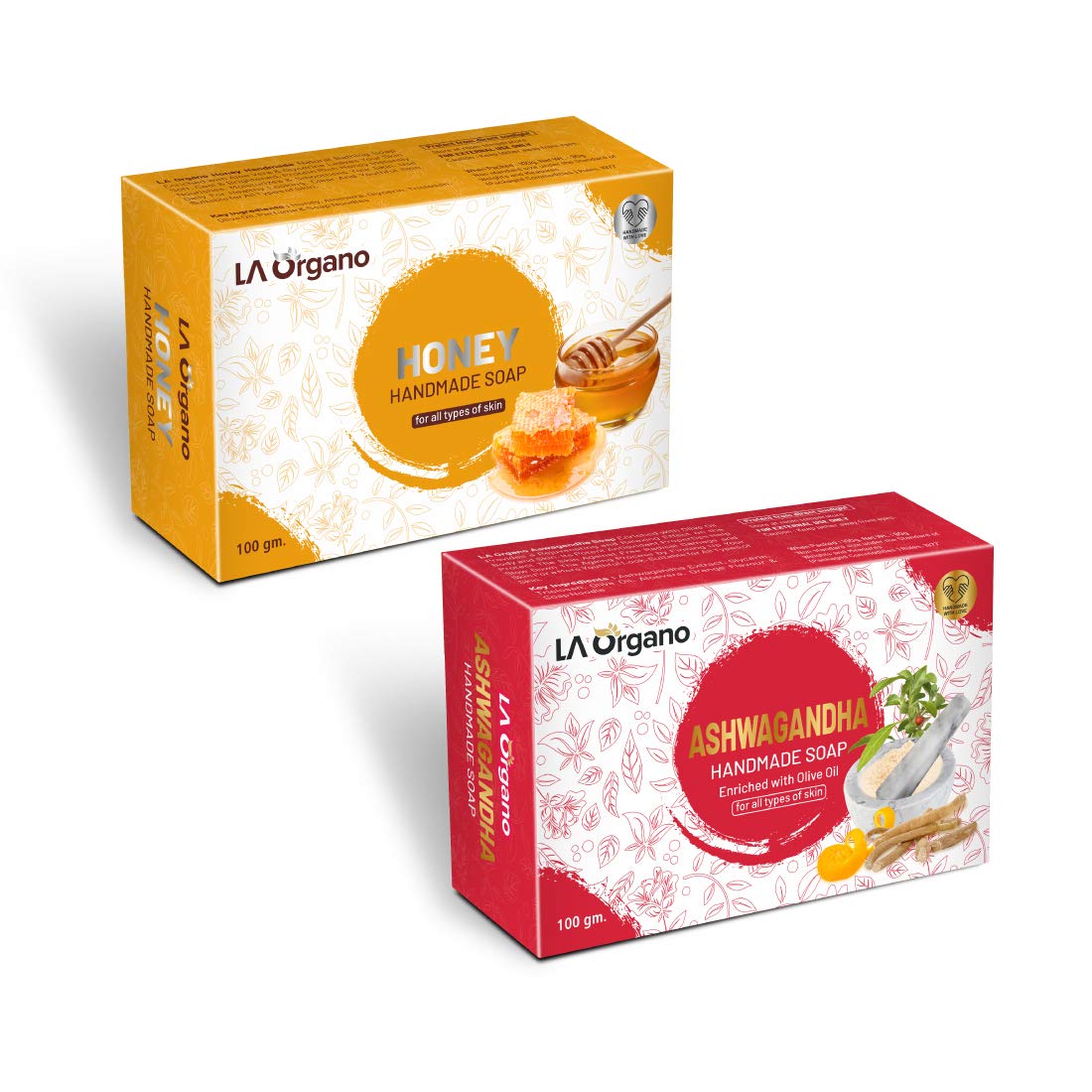 LA Organo Honey & Ashwagandha Handmade Bath Soap (100g each Pack Of 2)