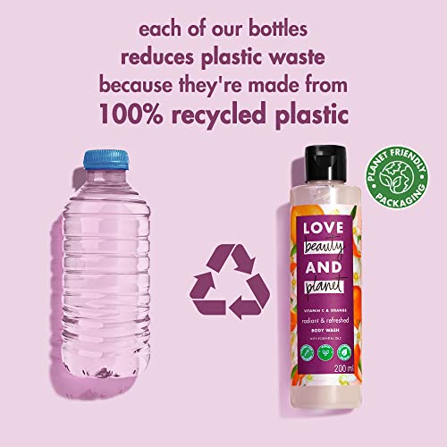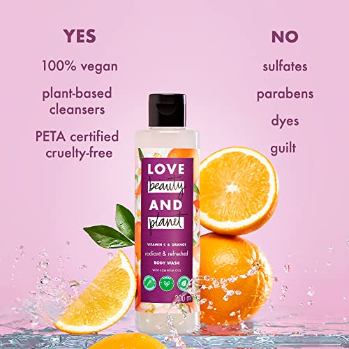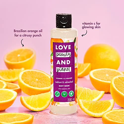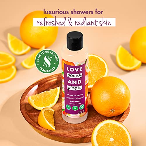 Our refreshing Vitamin C & Orange body wash is made with no sulfates no parabens and is powered with plant-based cleansers leaving you and the planet a little more beautiful. Its time to indulge in invigorating showers & get radiant refreshed skin that's scented with the zesty fragrance of ethically-sourced Brazilian oranges. Our luxurious Body Wash is the perfect remedy for radiant gently cleansed skin & pure uninterrupted bliss. How to use? You know it squeeze lather rinse! Go easy on the tap. Our goal is a carbon footprint so small it's like we weren't even here. We at Love Beauty & Planet have started our journey by loading our products with natural goodness and packing it in bottles made from 100% recycled plastic. Our delicate scents are infused with natural and ethically sourced oils and extracts. All our bottles are made of 100% recycled plastic waste and are completely recyclable. Our caps and pumps arent made from recycled plastics yet but were working on it. Our products are free from ed harsh chemiclike parabens dyes and sulfates. Love Beauty & Planet is PETA Certified cruelty-free and vegan. Globally Love Beauty & Planet does not test on anim. We are committed to small acts of love that make our planet cleaner greener and more beautiful.