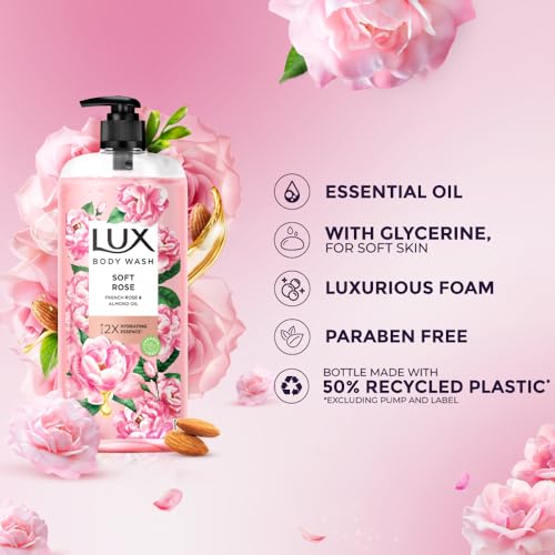 Want extra from your soap? Switch to Lux Soft Skin Body Wash for 3 extra benefits. Indulge in extra foam extra softness in an extra gentle formula. Indulge in a daily bath that captivates your senses with Lux Bodywash designed with delicate blend of French Rose extract & sweet Almond oil that leaves your skin feeling soft and glowing. The alluring scent of French Roses will turn your shower into a moment of pure pleasure. Crafted by one of the best perfumer top notes of bergamot and red fruits fill your senses before evolving into a feminine floral heart of rose white florals and violets for perfume that indulges. At the base of this LUX fine fragrance body wash sits musk amber and vanilla notes sweet scents that softens the fragrance and lingers on your skin. Formulated with glycerine a well-known skincare ingredient that helps preserve skins natural moisture Lux Soft Skin Body Wash leaves your skin feeling soft and glowing. Lather up for a sensorial shower like never before in just 3 steps: Step 1 - Create rich foam by pouring a coin sized drop on a wet loofah. Squeeze to make it lather. Step 2 - Massage rich lather on wet skin then rinse away thoroughly with water. Step 3 - Enjoy an alluring floral fragrance and soft glowing skin.