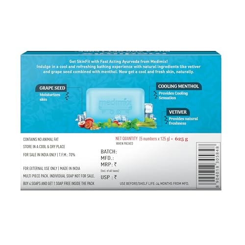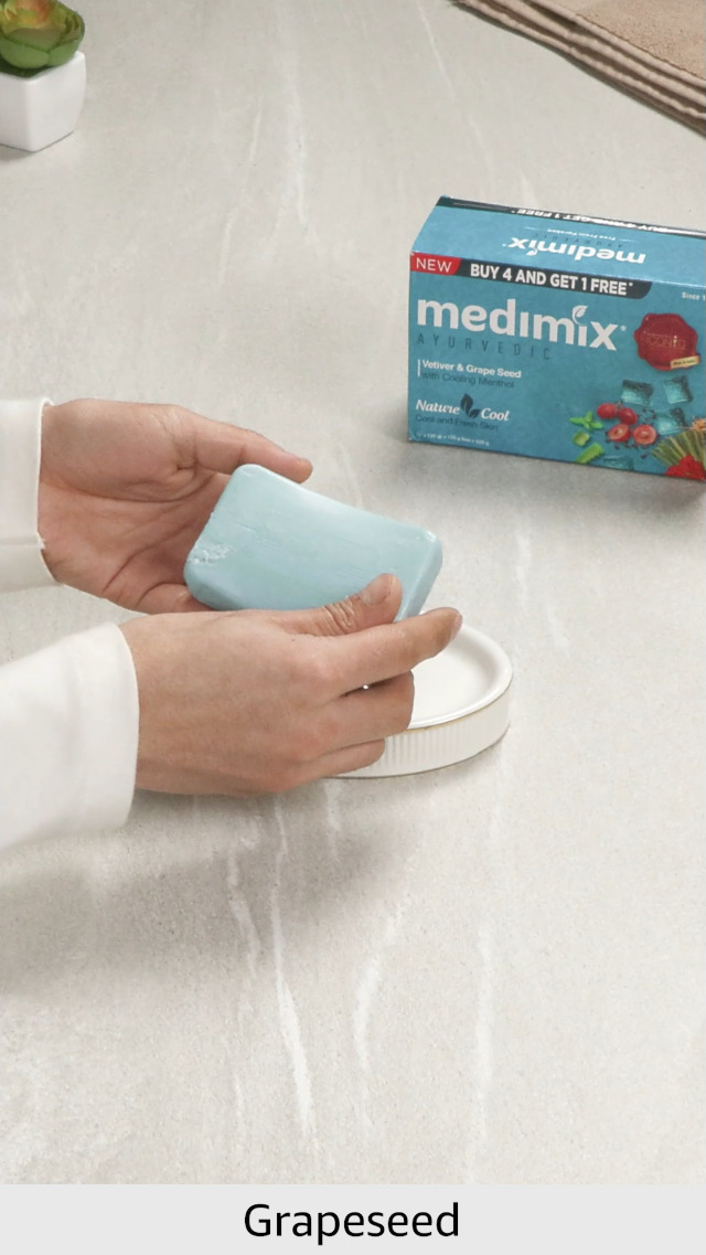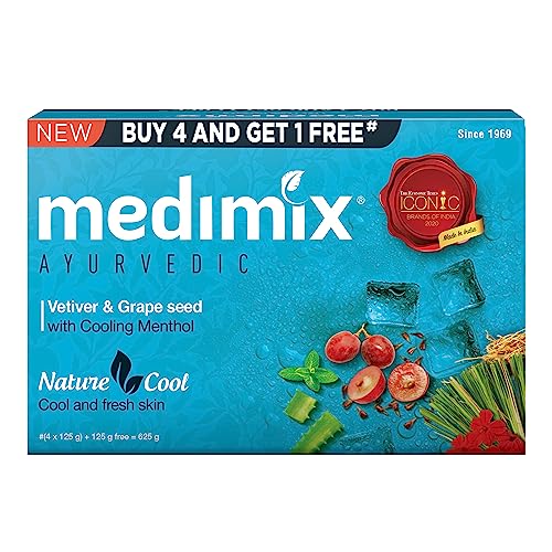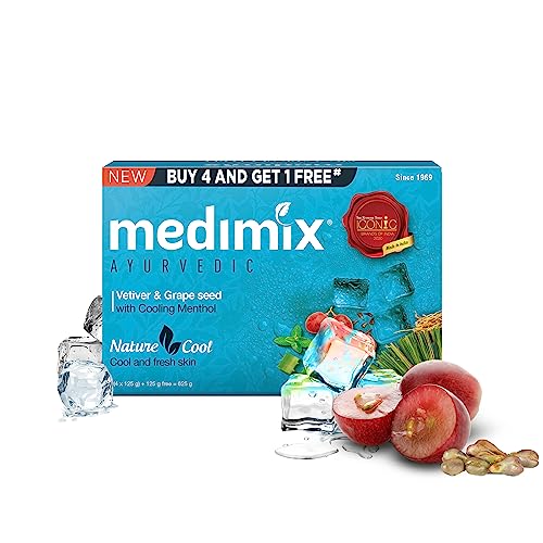 Medimix Ayurvedic Cool Bathing Soap With Menthol, Vetiver & Grape Seed 125Gm (Buy 4 And Get 1 Extra Combo Pack) | Shop Herbal | Natural | Paraben-Free & Sulphate-Free | 100% Vegan
