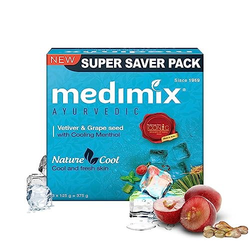 Medimix Ayurvedic Cool Bathing Soap Bar With Menthol, Vetiver & Grape Seed 125 g (Combo Pack of 3) | For Fresh & Protected Skin | Shop Herbal | Natural | Paraben-free & Sulphate-free | 100% Vegan