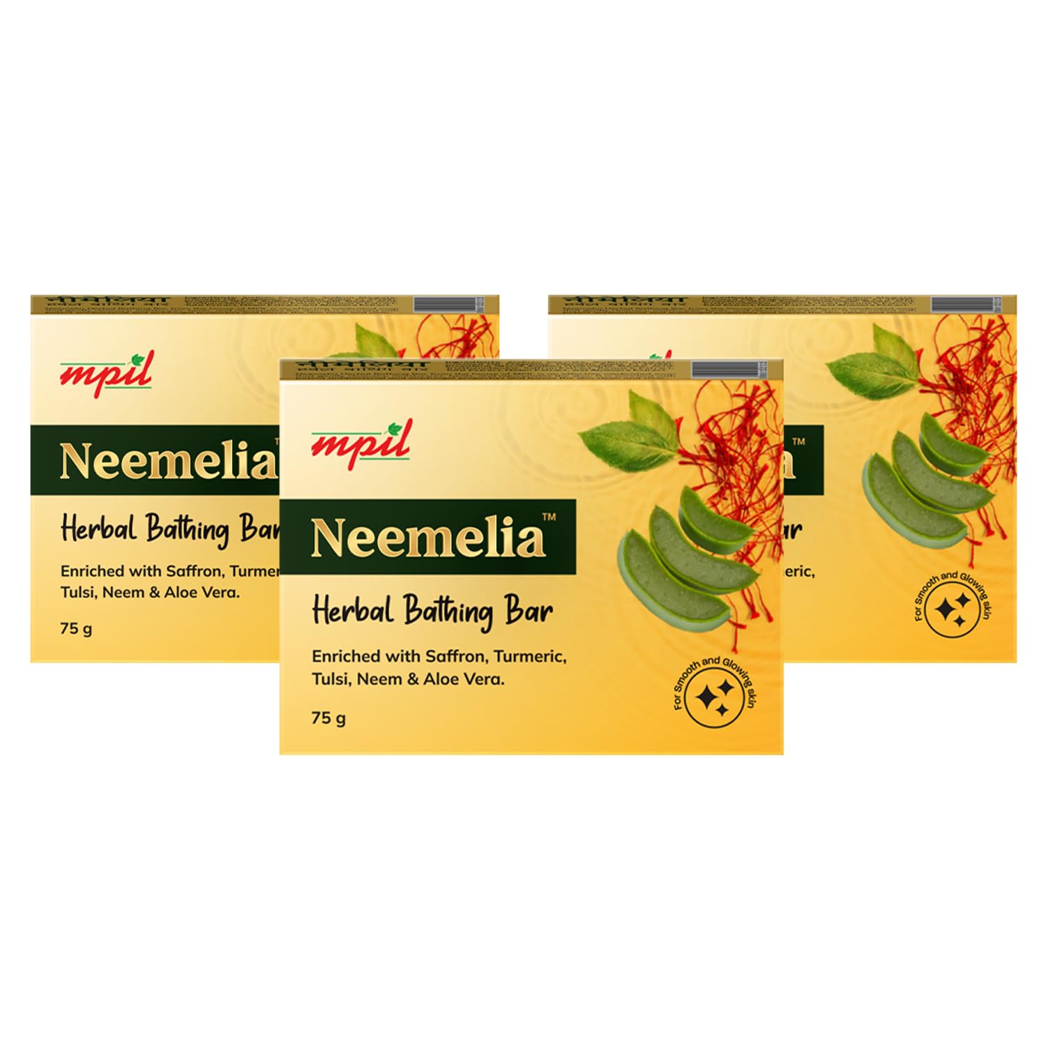 Mpil Neemelia Herbal Bathing Soap is an all natural herbal soap. It has neem and Kesar as it's active ingredients. Neemelia Herbal Soap is highly useful for people suffering from acne.