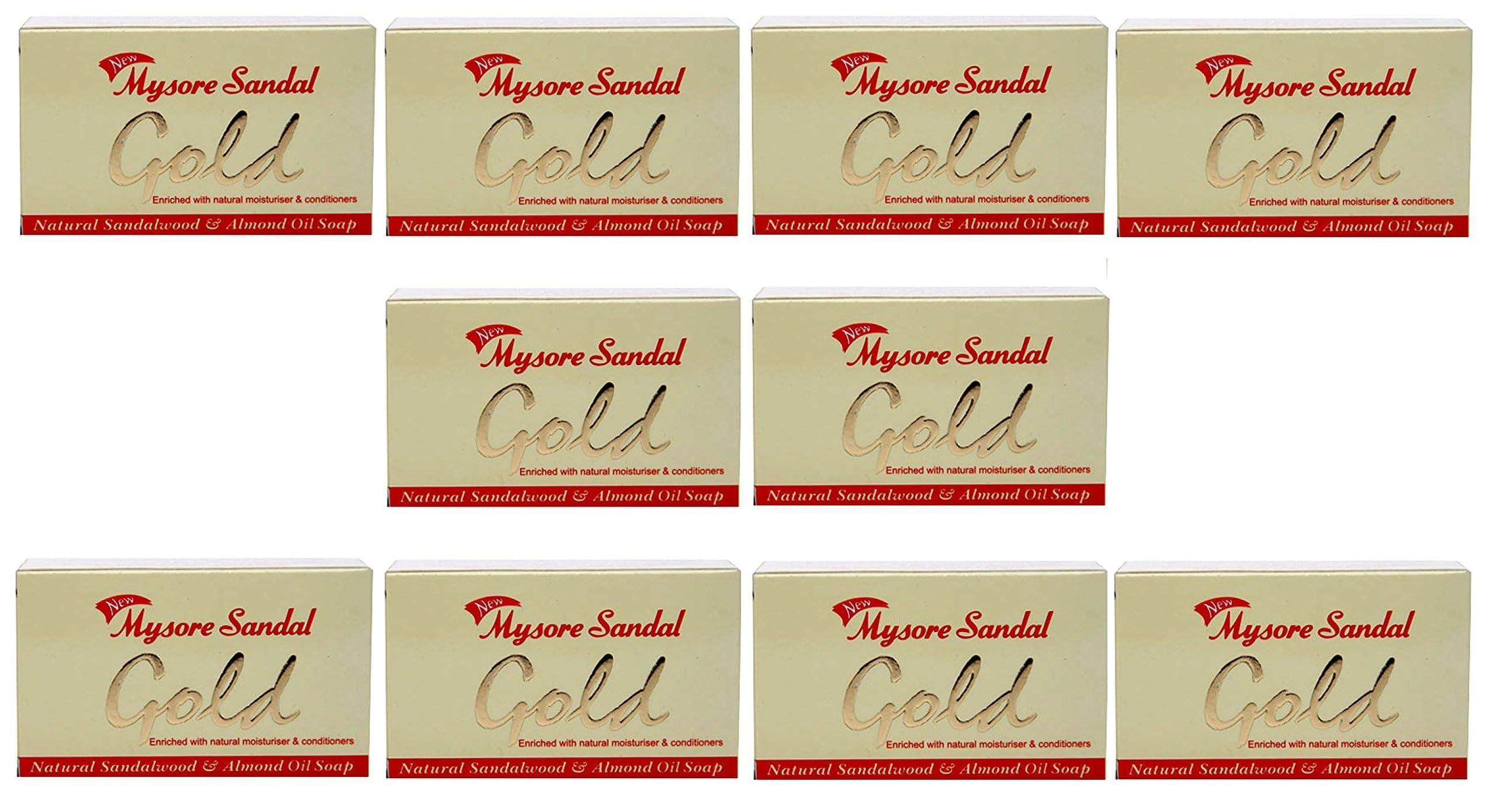 Mysore Sandal Mysore Sandal Gold Soap 125 Grams Per Unit (Pack of 10) - Grade 1 Soap - TFM 80% - Zero Dryness Brand : Mysore Sandal