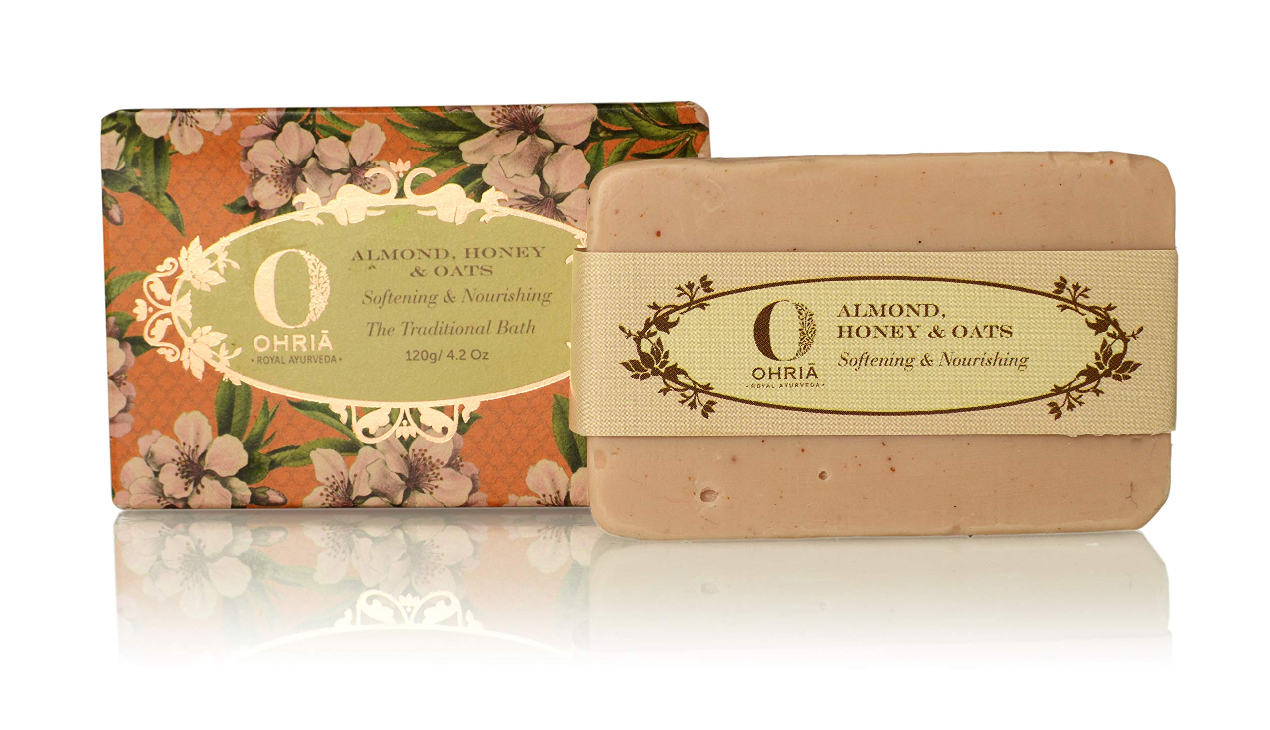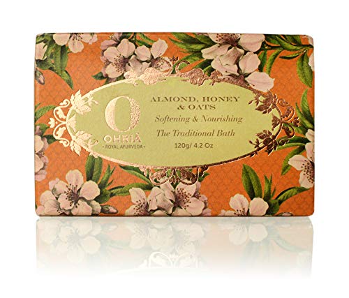 Enriched with nourishing pure honey Almond Oats and Kokum Butter. It cleanses leaving the skin silky soft and smooth. Cold Pressed coconut and wheat germ oil with jojoba extract and Vitamin E moisturize and rejuvenate. A unique traditional bathing bar hand created by blending in milk prepared with crushed almonds and oats.