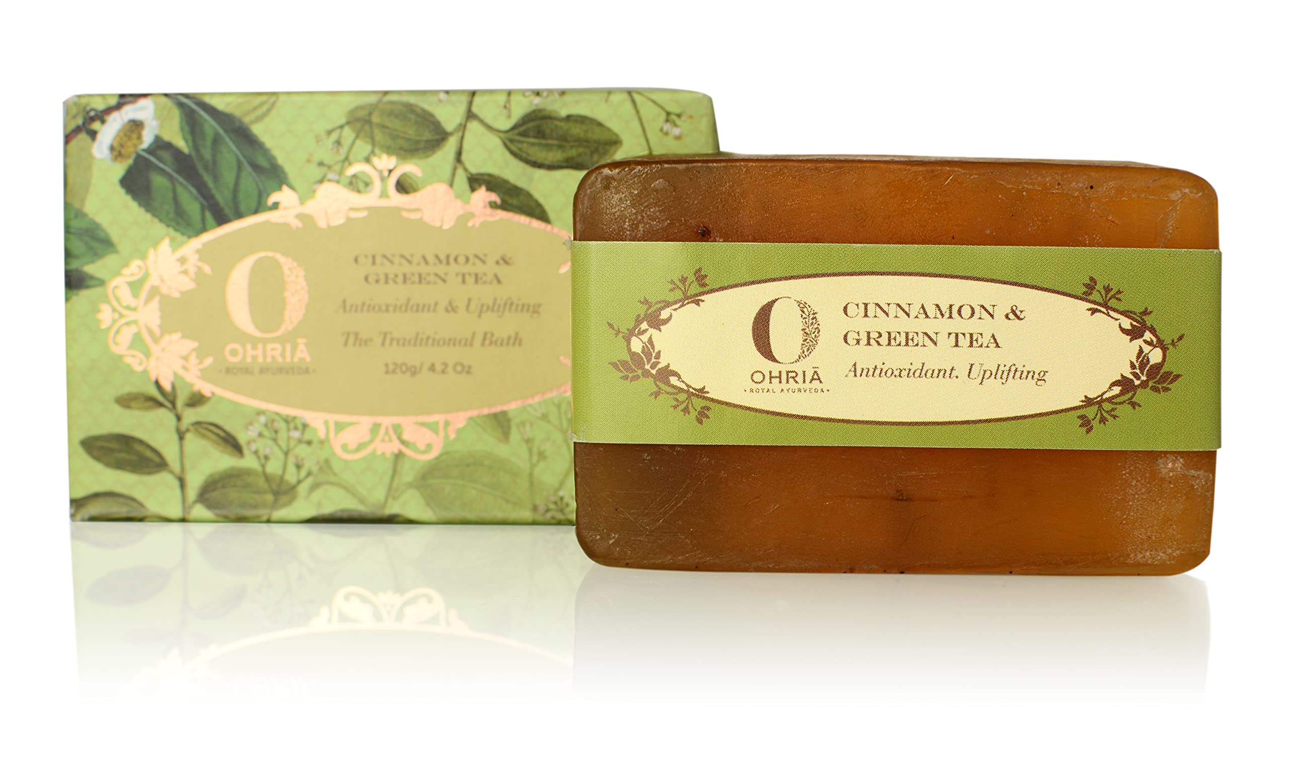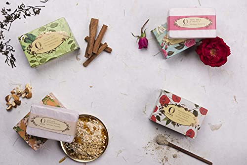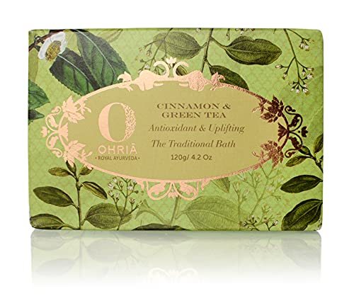 Unique sweet leafy bathing bar is hand created by blending cinnamon powder and green tea for suppling power shot of antioxidants to the skin. Cinnamon powder is hand pounded from finest sticks to be infused with green tea extracts. The leafy aroma is uplifting and energizing. Cold pressed jojoba oil and kokum butter soften and soothe skin.