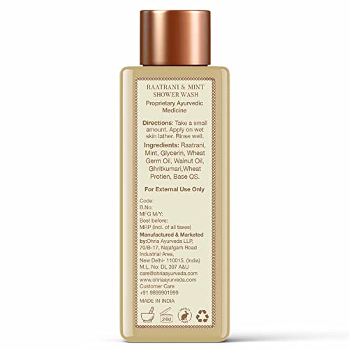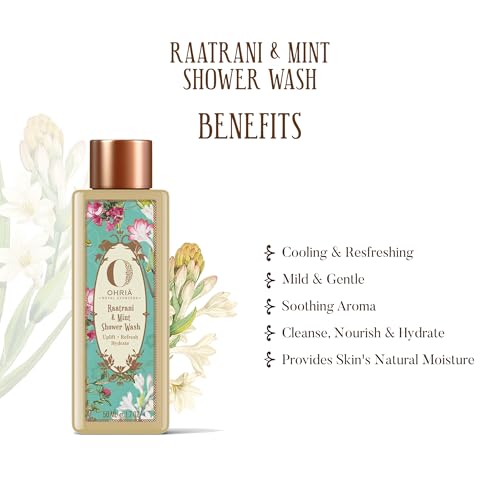 • Ohria Ayurveda Raatrani & Mint Shower Wash is an ultra-rejuvenating shower wash enriched with Ayurvedic essences of raatrani & mint to clean refresh & hydrate.