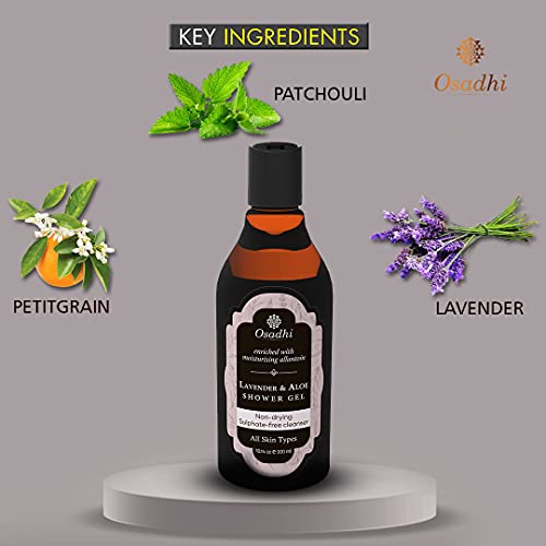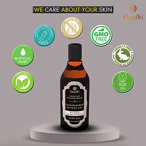 OSADHI Vegan Body Wash, Sulphate Free All Natural Body Wash, After sports workout Shower Gel For Women and Men, 300 ml (Lavender & Aloe)