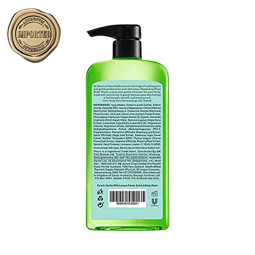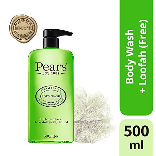 Pears Pure & Gentle Lemon Flower Extract Body Wash With Glycerin, Dermatogically Tested, 100% Soap Free Shower gel,Imported,500 ml (Free Loofah)