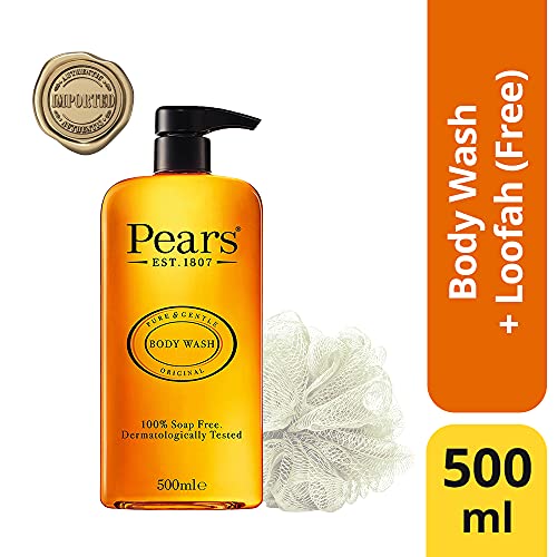 Pears Pure & Gentle Original Body Wash With Glycerin, Dermatogically Tested, 100% Soap Free Shower gel,Imported,500 ml (Free Loofah)
