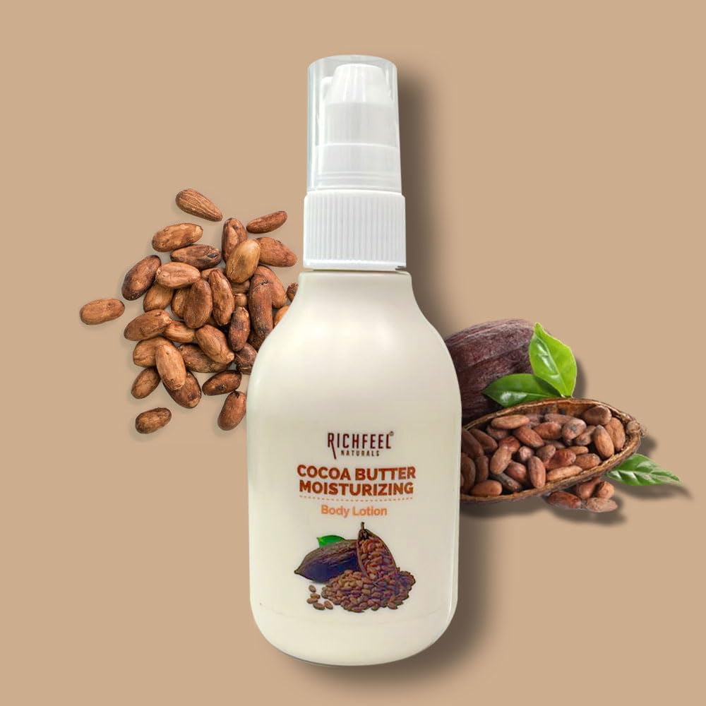 Cocoa Butter Body Lotion: Indulge your skin in the decadent richness of cocoa butter with our luxurious body lotion. Cocoa butter is deeply moisturizing and packed with antioxidants making it ideal for restoring dry dull skin to its optimal state of softn