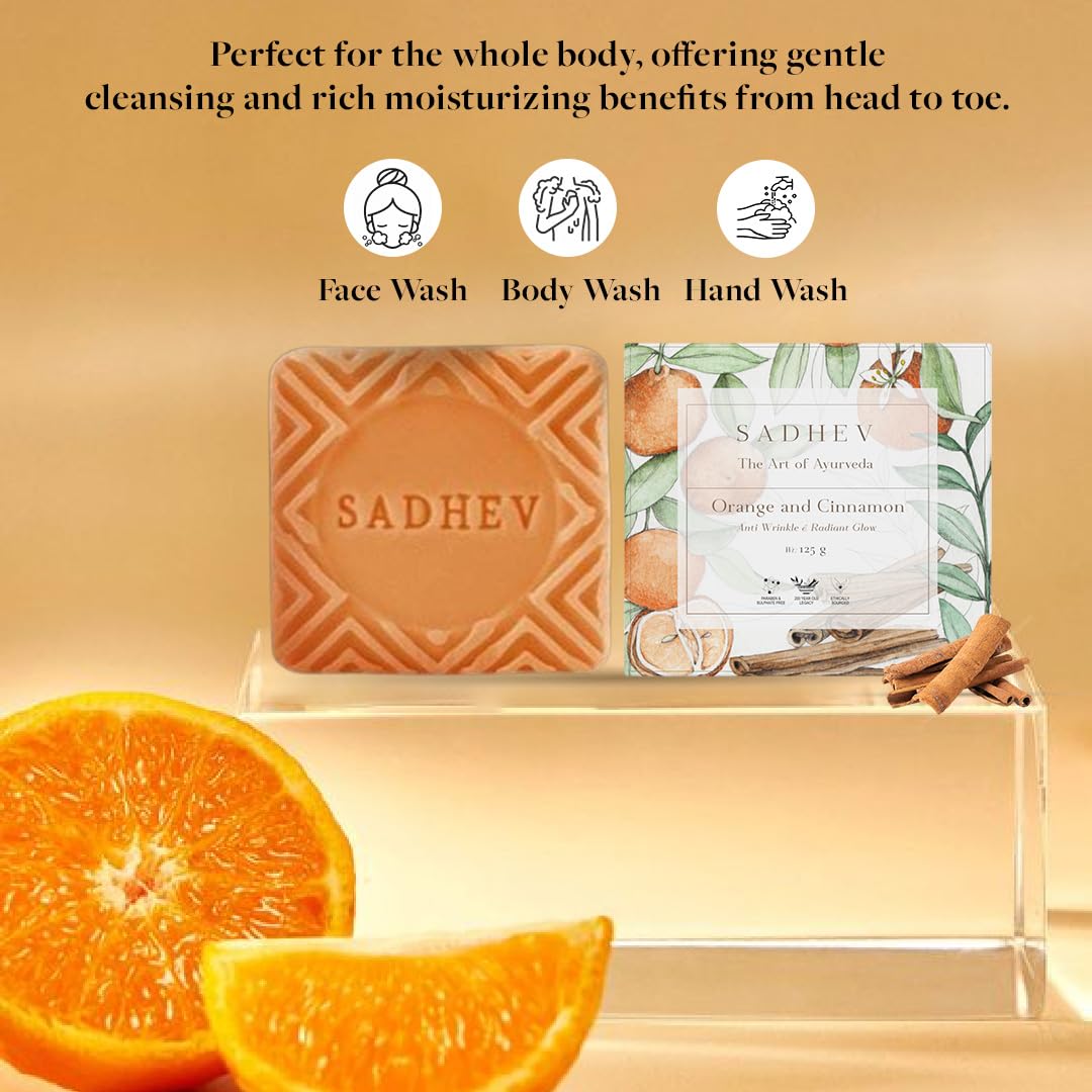 Sadhev Organic Orange & Cinnamon Bathing Soap for Anti-Wrinkle Chemical Free - 125g (Pack of 1)