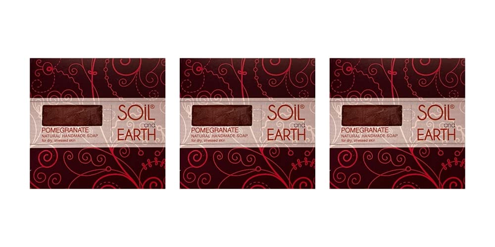 SOIL AND EARTH HANDMADE NATURAL SOAPS | For All Skin Types | 100% Vegan | Paraben Free | (POMEGRANATE)_3 X 125 gm/ 4.4 oz.
