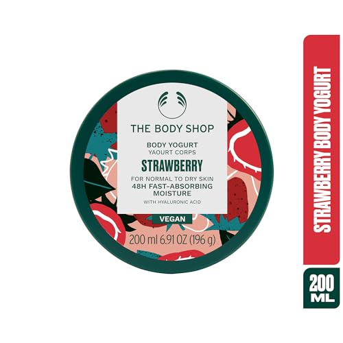 The Body Shop Vegan Body Yogurt Strawberry Cream, 200 Ml - For NormaL To Dry Skin | Instant 48 Hr Moisture | Vegan