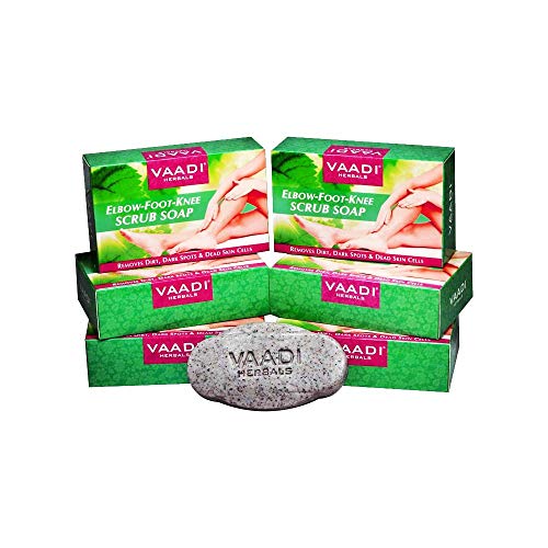 An innovative formula to give your elbows feet and knees the extra attention they deserve. The finely ground Walnut and almond extract together exfoliate even thick deposits of dead cells while smoothing and lighting the areas while aloe vera keeps the skin pampered. What is the importance of scrubbing? The biggest misconception people have is that scrubbing is just meant for the face. Elbows Knees and Feet are often neglected and kept out of the skin care regime. Dirt gets accumulated and dead skin's layers end up making our feet look shabby dark and ugly. Elbows and Knees darken in comparison to the skin tone. Hence it is highly important to scrub them once a while so as to unveil beautiful feet elbows and knees. You won't have to hide your feet in those shoes or wear full-sleeved clothes to hide your elbows. The right ingredients are necessary to remove those dead cell layers and provide skin with essential nutrients and moisturize it. Be it oily or dry skin type scrubbing is important for everyone. How do scrubs help in exfoliation and beautification? Scrubs have the following benefits: Removal of Accumulated dead skin cells Skin becomes soft and supple. Dull Dry skin glows after scrubbing. Skin tanning caused due to excessive exposure to sunlight. Regular scrubbing may remove skin tan. Moisturizes skin and improves the skin quality. Removes blackheads pigmentation dry patches and prevents skin outbreaks. Keeps away boils that are caused by dirt and germs. Why is Pedicure necessary? A good pedicure treatment in a salon is expensive. However it cannot be neglected as the feet need pampering and scrubbing as they are always on ground and trap dirt get tanned in sun and are the most neglected. With Vaadi's Elbow-Foot-Knee Scrub Soap pedicure is not such a task anymore. All one needs is a warm water and scrub soap to exfoliate the feet and also sensitive areas like elbows and knees. After a regular usage of this soap a visible difference is seen as the skin is few tones lighter and even tanning can be reduced through this easy treatment at home. Regular exfoliation with the scrub soap will not let dead skin accumulate hence diffusing chances of boils infections pigmentation or skin darkening. An easy home pedicure is all it takes to beautify the appearance of feet. Also elbows and knees too get the necessary attention and care. How do Wanuts & Almonds exfoliate the skin and impart glow? Fine granulated almonds and walnuts are carefully mixed. The particles are miniscule so that they do not hurt the skin and help in cleaning off the dead cells from the epidermal layer of the skin. Regulating blood flow & skin polishing: The scrub contains almond particles combined with walnut essential particles which when rubbed on the skin automatically polishes and gives skin a natural silky shine. The particles regulate the production of elements which diminishes the harmful toxins which progresses the normal oil secretion process of the skin. Excellent exfoliation & moisturizing: Almonds & walnut scrub is very efficient for skin care in a way that it gently exfoliates the skin removes the accumulated dust particles in the layers of the skin thereby moisturizing the skin. The goodness of Vitamins: Almond particles are rich in the vitamin content making them a natural anti-oxidant. The essential almond oil is easily absorbed in the skin thereby providing a quick relief to all the skin damage caused by irregular eruptions dirt and the UV rays of the sun. Walnuts are rich in Vitamin E which benefits skin in natural ways that skin glows with health. Wrinkling of the skin slows down and a healthy glow is imparted.
