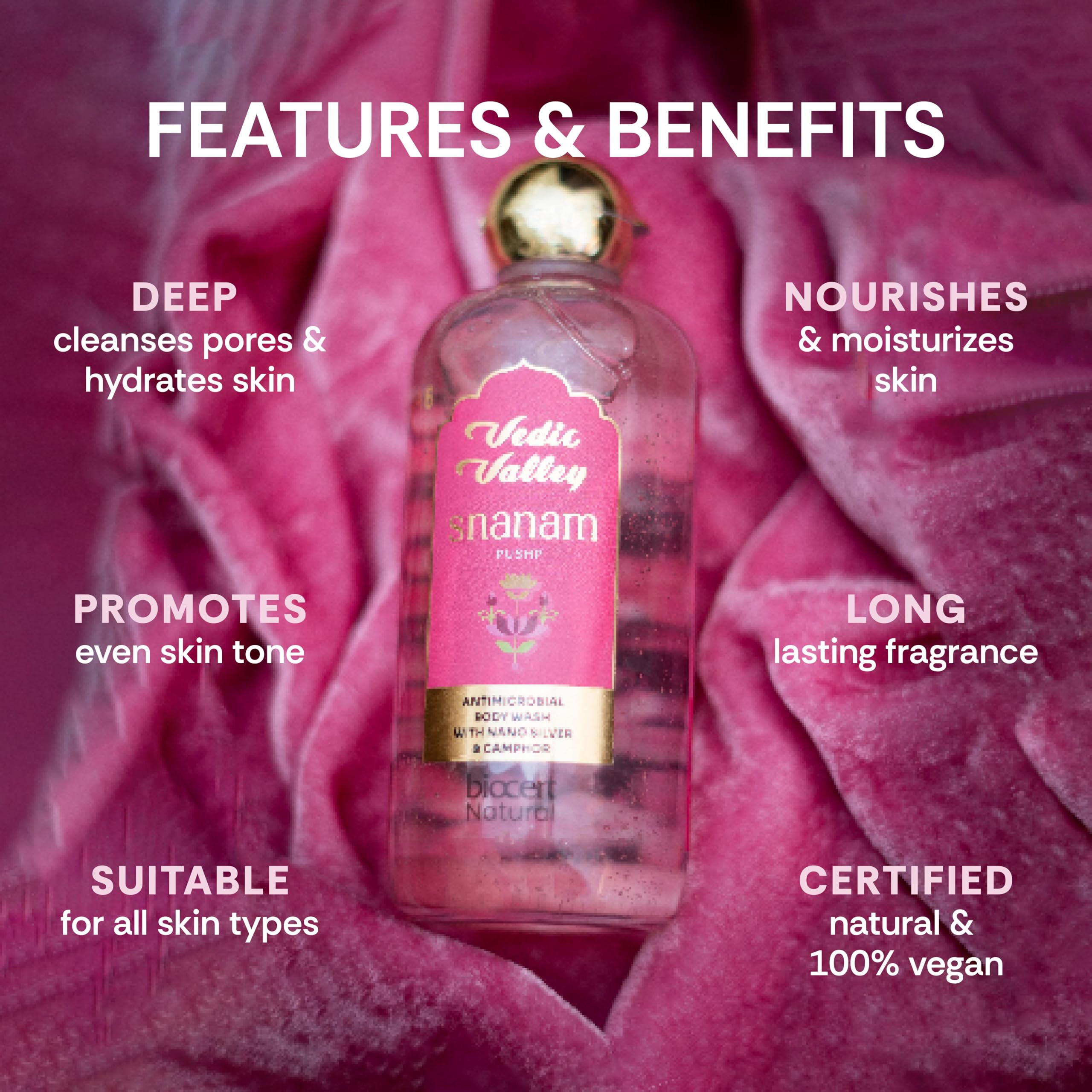 HomeHealth & PersonalSkin CareBody CareBody & BathVedic Valley Pushp Body Wash 100% Natural & Vegan | SLS & Paraben-Free Shower Gel for Glowing Skin | Fights Body Acne Dryness & Tan | Long-Lasting Fragrance | For Men & Women | 330 ml