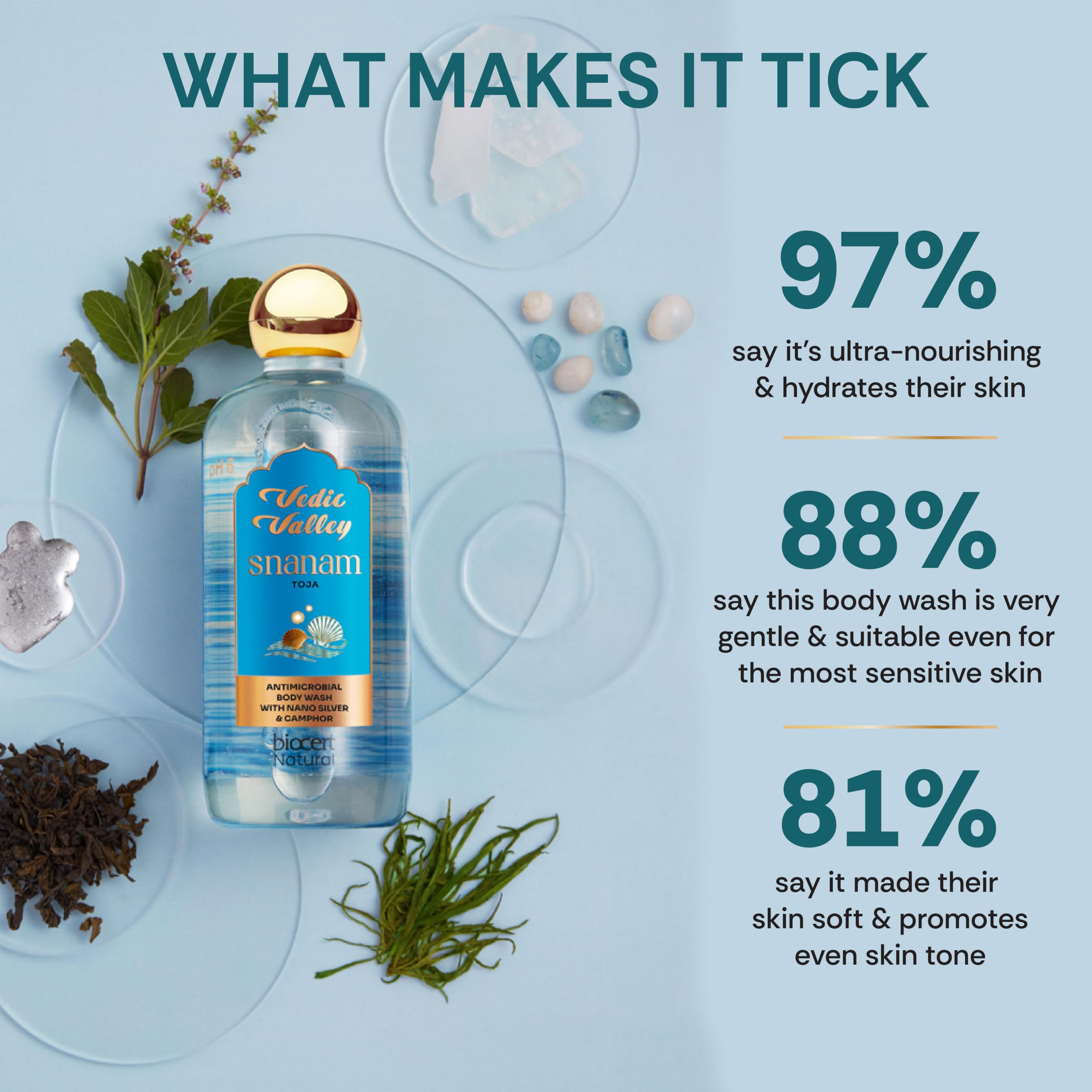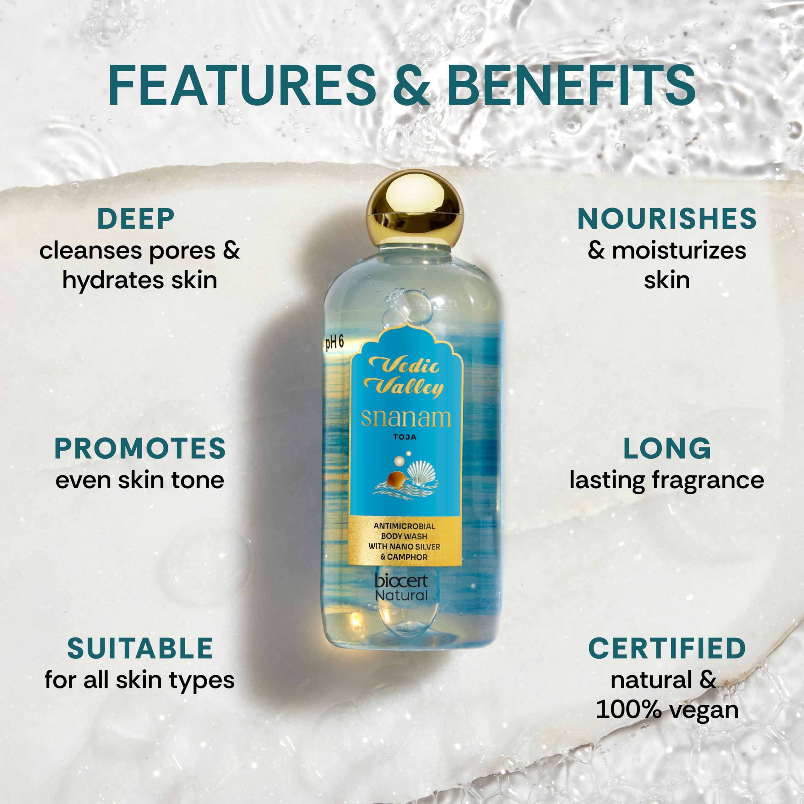 HomeHealth & PersonalSkin CareBody CareBody & BathVedic Valley Toja Body Wash 100% Natural & Vegan | SLS & Paraben-Free Shower Gel for Glowing Skin | Fights Body Acne Dryness & Tan | Long-Lasting Fragrance | For Men & Women | 330 ml