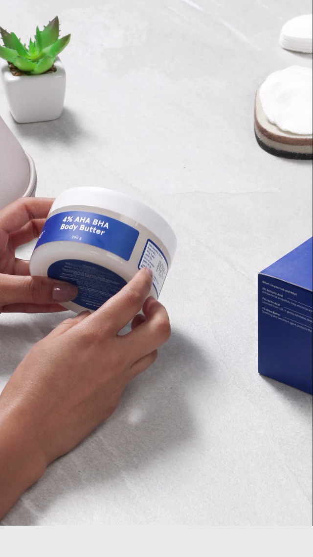 • INTRODUCING: Be Bodywise 4% AHA BHA Body Butter with the power of 2% Salicylic acid 2% Lactic acid hyaluronic acid & shea butter. A daily nourishing body butter with a creamy texture that will help you deeply moisturize and even tone your skin.