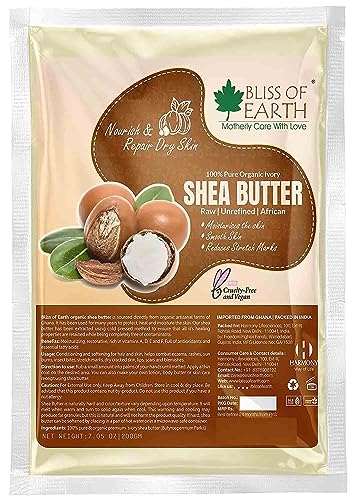 Bliss of Eartho 100% Pure Organic Ivory Shea Butter | Raw | Unrefined | African | 200GM | Great For Face Skin Body Lips DIY products|