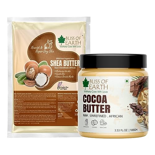 DISCOVER THE BEAUTY OF YOUTHFUL GLOWING SKIN AND SOFT LUSCIOUS HAIR WITH THIS ONE NATURAL AND PURE BUTTER. Do you need the remedy for one of these common skin and hair issues? Stretch marks Scars Blemishes Eczema?- Dry cracked skin heels lips? - Wrinkles Fine lines? - Dry cracked nails cuticles? - Dry Dehydrated Frizzy Unruly or Brittle hair? - Minor cuts Burns Sunburn Diaper rash? And the list goes on... FINALLY GET THE BEAUTIFUL SKIN AND HAIR OF YOUR DREAMS WITH BLISS OF EARTH 100% PURE ORGANIC RAW COCOA BUTTER Bliss of earth cocoa butter is unrefined meaning it has not gone through a chemical extraction process that overheats and bleaches the butter leaving it with less of its healing properties. Because our butter is so pure it has an amazing lip smacking chocolaty aroma. Our Cocoa butter is ultra healing because it has high contents of antioxidants essential fatty acids vitamins E and K the beauty vitamins. Our butter is sealed in our controlled environment and will come to you just as you see it. This butter is perfect for fighting ageing and stretch marks conditioning your hair or beard and moisturizing your skin. You will be hooked on how this butter makes you look and feel. IT'S TIME FOR YOU TO EXPERIENCE TRULY PURE COCOCA BUTTER AND REVEAL HOW GORGEOUS YOUR SKIN AND HAIR CAN BE. We you will be 100% satisfied and in love with your new skin and hair or your money back. SO EMPTY OUT YOUR BEAUTY CABINET AND ADD BLISS OF EARTH 100% ORGANIC COCOA BUTTER TO YOUR CART NOW AND ENJOY BEING IN YOUR OWN SKIN.