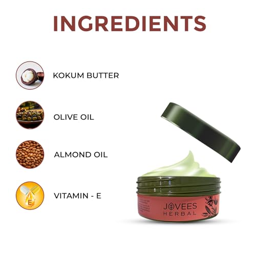 Jovees Kokum Body Butter is formulated with a harmonious blend of nature's finest ingredients to deeply hydrate moisturize and revitalize your skin. Infused with Kokum butter & Vitamin E the body butter deeply penetrates the skin layers leaving it supple and revitalized. The soothing benefits of natural oils work harmoniously to nourish & hydrate your skin deeply. Indulge in the silky smooth texture of our natural ingredient body butter as it effortlessly melts into your skin leaving it feeling velvety soft deeply hydrated and beautifully radiant.