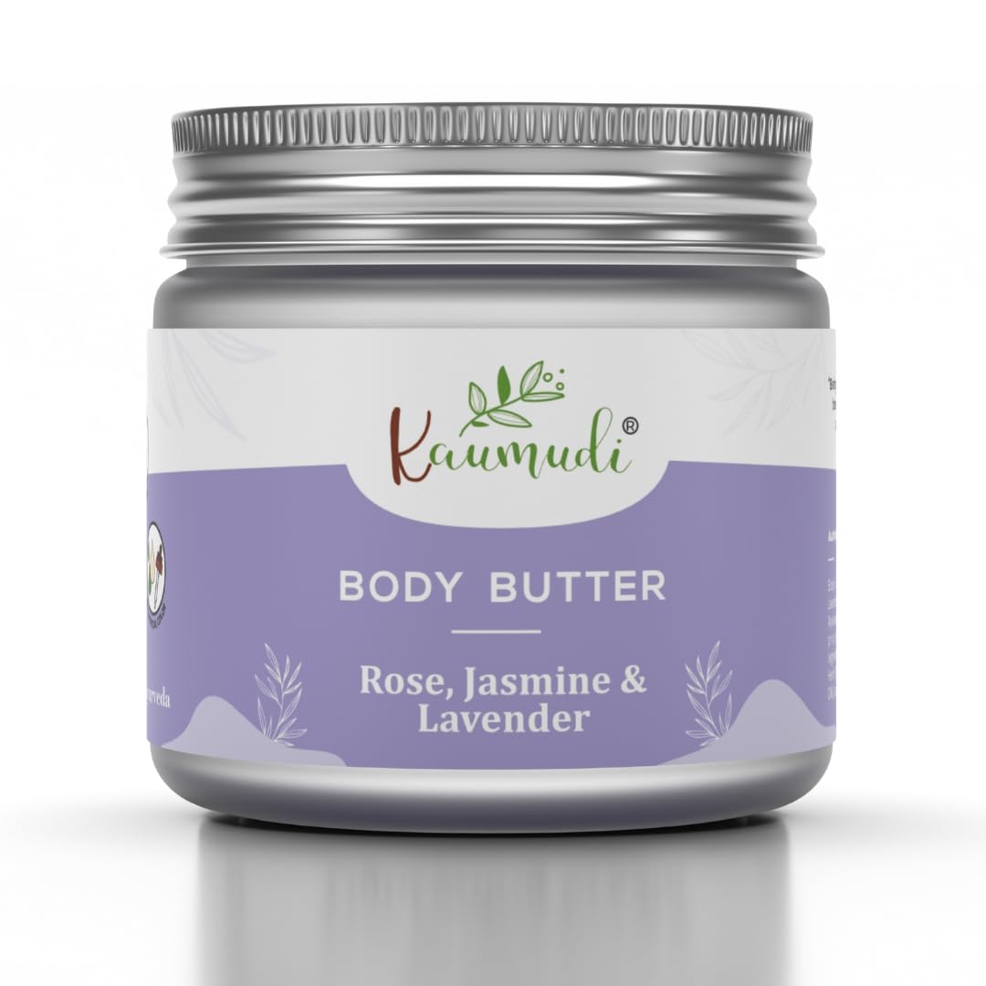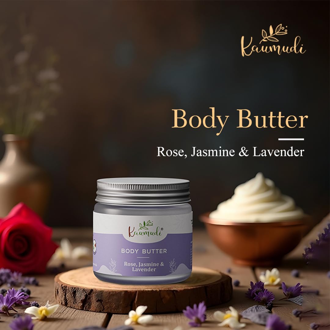 Kaumudi Body Butter - Rose Jasmine & Lavender (Handcrafted with Natural Ingredients) | Hydrating & Deep Moisturization | 100 Times Washed Ghee | Paraben Silicone & Mineral Oil Free |150g/5.29 fl Oz