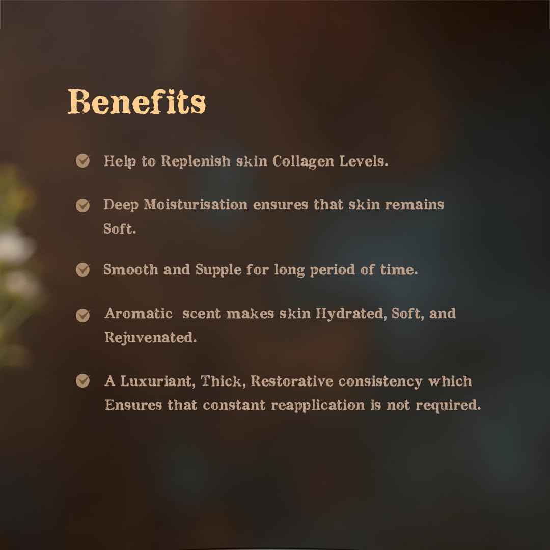 Body Butter Rose Jasmine & Lavender is formulated according to Ayurveda's rare books we have used precious and most effective ingredients (100 Times Washed Ghee Herb Extracts Essential Oils & Carrier Oils) according to Vedic Shastra.